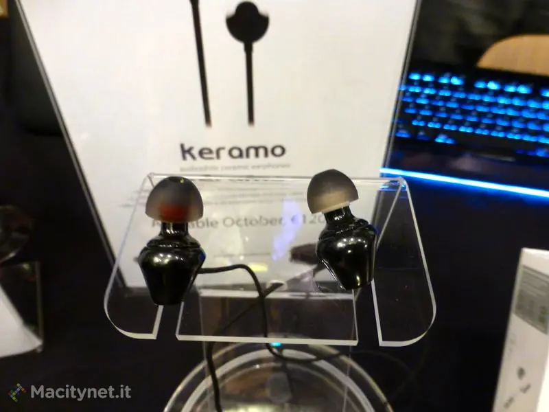 Gli auricolari Keramo offrono chassis in ceramica, materiale estremamente rigido selezionato per ridurre al minimo la distorsione armonica. All’interno sono integrati driver di qualità da 9mm ad ampia frequenza (10 Hz-22kHz). Il design particolare e asimmetrico è stato ispirato dai fiori: dalla prima prova rapida in fiera possiamo confermare una riproduzione audio di qualità elevata e soprattutto molto bilanciata. Bassi, medi e alti sono riprodotti con acustica pulita e suoni naturali, senza la predominanza dei bassi. Gli auricolari Keramo saranno disponibili da ottobre in USA al prezzo di 120 dollari e sono destinati agli appassionati di audio che non vogliono rinunciare all’ascolto di qualità anche in movimento o dal proprio smartphone.
