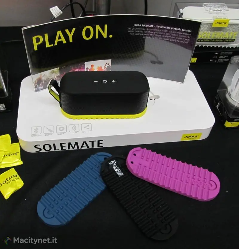A prima vista può sembrare uno strano scarpone ma guardate sotto la suola a carroarmato troverete le stringhe, pardon, i cavi con miniJack che permettono di collegarlo a qualsiasi dispositivo audio ma se siete abituati a tenere le scarpe ad adeguata distanza, magari dopo una lunga camminata tra gli stand dell’expo potete attivare la trasmissione senza fili bluetooth e collegarlo ad iPhone, iPad Mac…