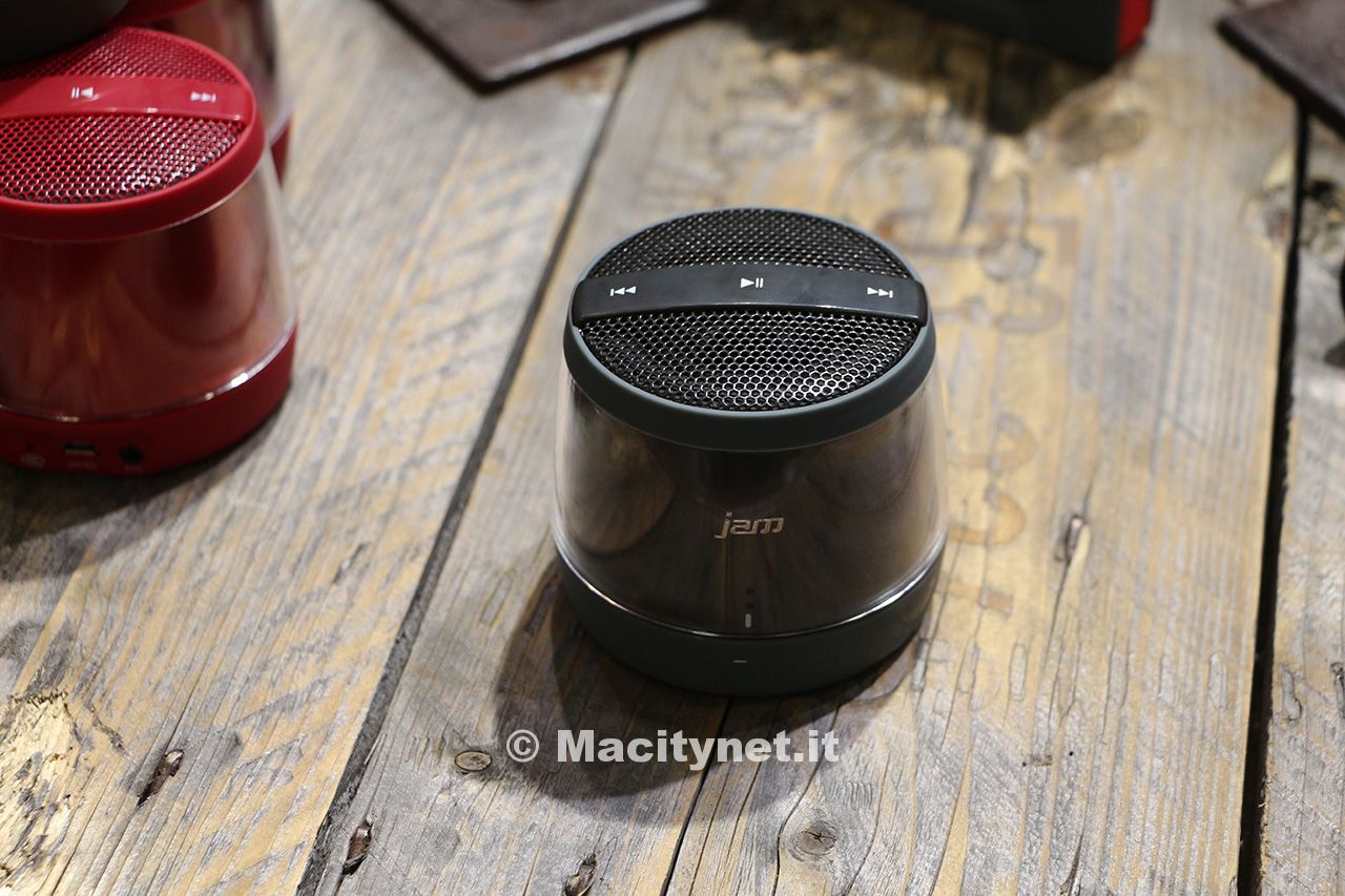 Sempre parlando di altoparlanti l’azienda ha presentato anche il Jam Touch che, come si evince dal nome, integra comandi touch per funzioni play/pausa e scelta della traccia: il volume invece viene regolato attraverso la rotazione della parte superiore dell’unita. Anche qui il microfono integrato aiuta a gestire le chiamate in vivavoce, mentre la batteria garantisce 6 ore di musica continuata. Particolare il design caratterizzato da una finitura esterna in acrilico trasparente, mentre l’interno è composto da vernice metallizzata.