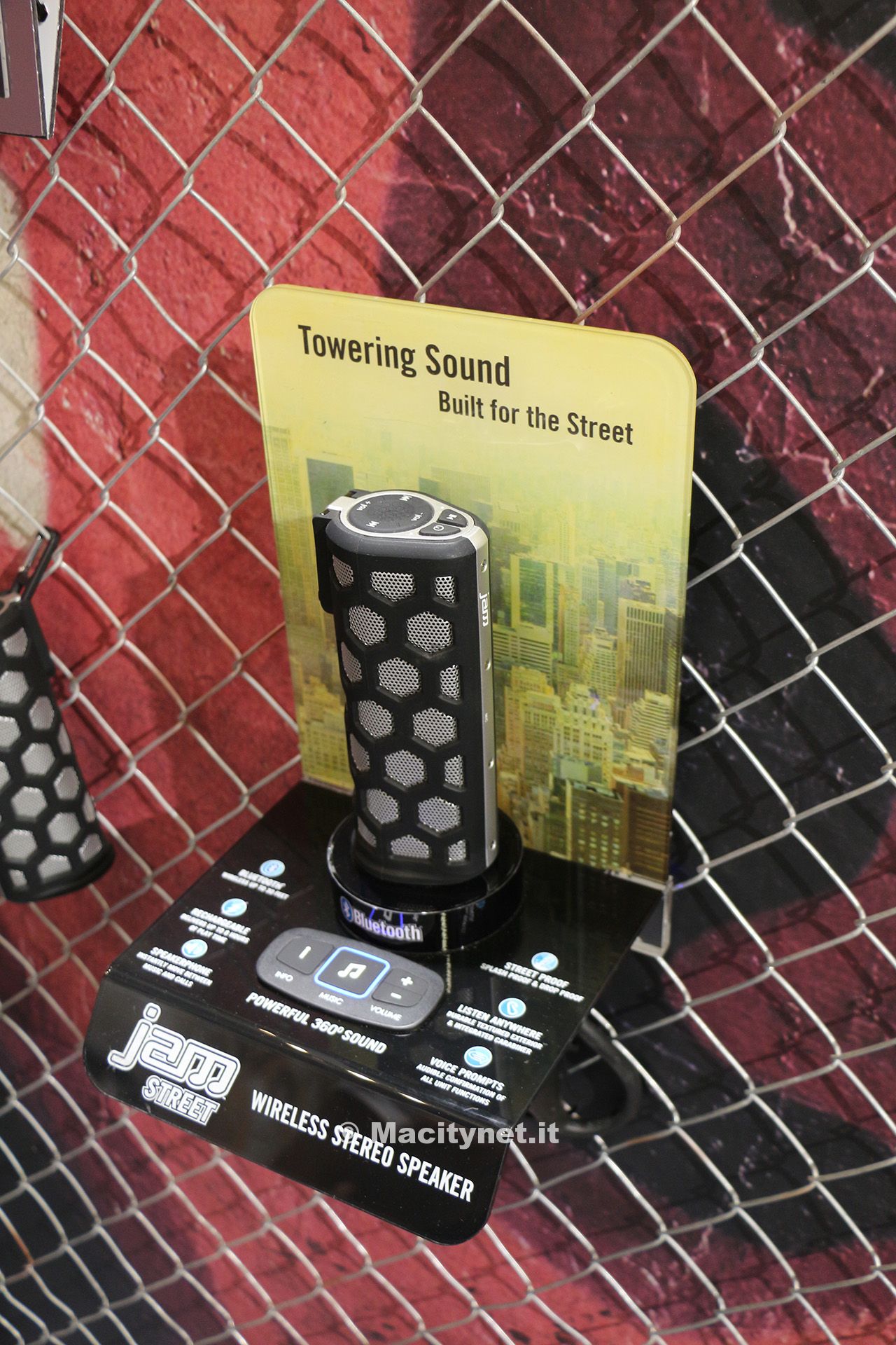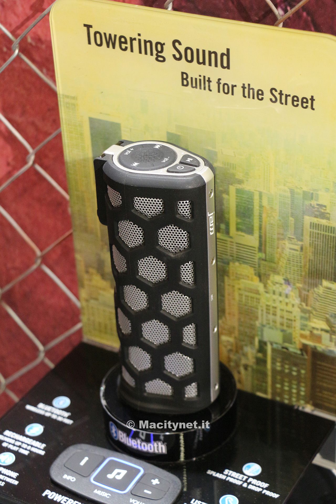 Per “sistemi audio da strada” ci riferivamo al nuovo Jam Street, speaker resistente ad acqua, polvere e sporco con certificazione IPX4. Come i sopracitati integra il microfono ma in aggiunta è disponibile l’ingresso Aux per collegare dispositivi senza Bluetooth. La particolarità del quarto speaker presentato, denominato Jam Nutron, sta nella ventosa presente alla base che permette di attaccarlo ovunque ci si trovi: resiste all’acqua, quindi può essere usato anche sotto la doccia fino a quattro ore consecutive.