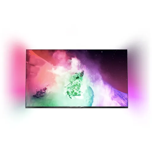Dal punto di vista del design, lo schermo senza cornice è posto all’interno di un bordo di alluminio sottile, visione migliorata dall’effetto della luce Ambilight sui due lati che si riflette sul muro dietro lo schermo.