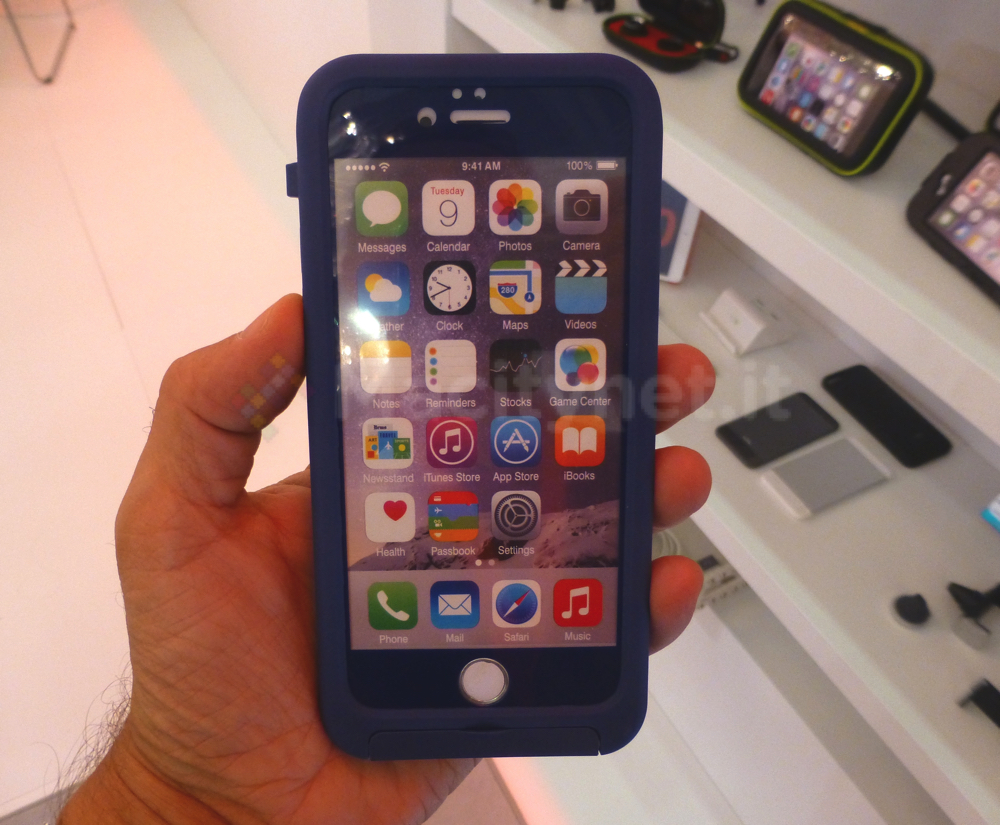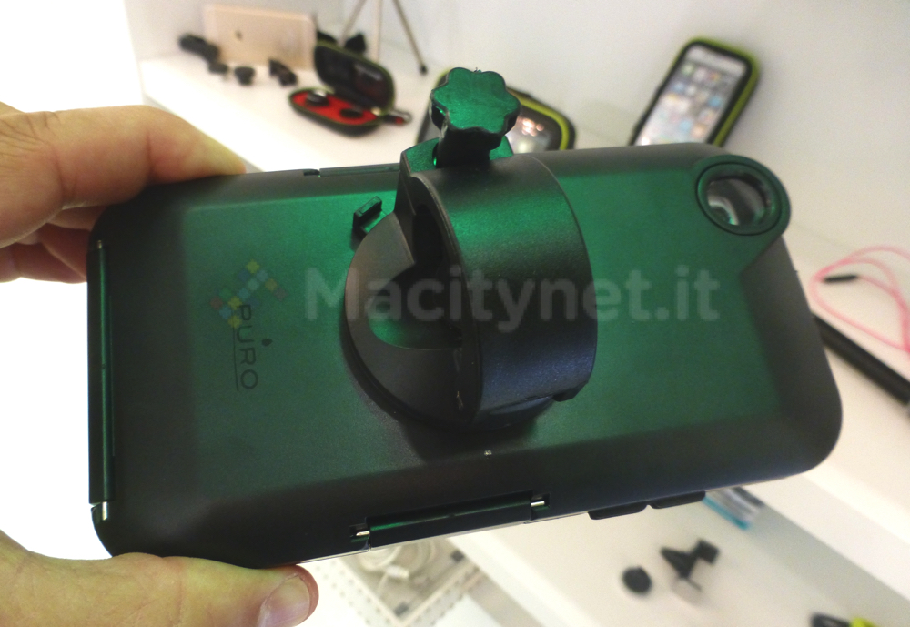 Nella fotogalleria che inseriamo in calce in questo articolo è possibile ammirare la nuova cover in arrivo che protegge completamente iPhone 6, fronte e retro, grazie alle due parti che si agganciano tra loro. Sul retro le aperture lasciano liberi obiettivo e flash così come il logo della Mela. Oltre alle cover Lander resistenti a polvere, schizzi e cadute segnaliamo Bike Holder Case dotate di gancio sul retro per fissare iPhone al manubrio della bici. Ancora, è visibile la nuova versione della Cover Bank con batteria integrata per incrementare l’autonomia dello smartphone Apple: sarà disponibile sul sito Puro da ottobre.