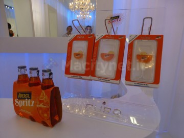 Tra le novità più curiose e divertenti troviamo le cover con scritte originali e simpatiche come il modello con la frase “In vino veritas” completamente trasparente, ad eccezione di una zona in rilievo a forma di bicchiere, al cui interno è contenuto del liquido rosso. Stessa idea alla base della cover realizzata da Puro in collaborazione con Aperol Spritz: l’effetto a varie angolazioni è visibile nel breve video ripreso a Berlino.