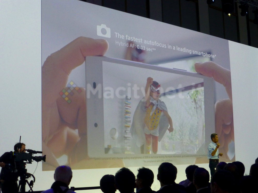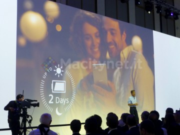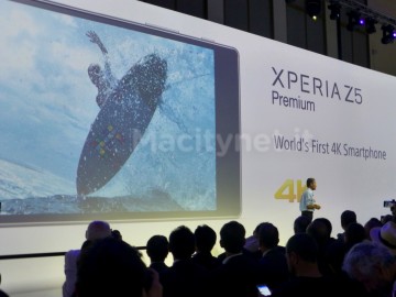 Con i terminali Sony Xperia Z5 è possibile scattare foto in condizioni di luce bassa e non ottimali: anche qui l’istrionico Ceo di Sony assicura immagini più chiare ma soprattutto prive di rumore e sfocature. Nella dotazione è incluso il sensore impronte posizionato nel tasto di accensione laterale, così il rilevamento avviene semplicemente impugnando lo smartphone. Non è finita: Sony Xperia Z5 mette a tacere tutti i costruttori Android che puntano a display con risoluzione sempre più elevata, proponendo per la prima volta in assoluto sul mercato il primo smartphone con schermo 4K. I video demo che girano nei terminali in mostra fanno impressione per colore e definizione. I più scettici che puntano il dito sulla scarsità di contenuti in questo formato sono anticipati da Kazuo Hirai che, a differenza di alcuni eventi precedenti in cui è stato affiancato da efficienti manager giapponesi, meno bravi però nell’arte delle presentazioni pubbliche, ha dimostrato le sue eccellenti doti di oratore in un keynote super concentrato, tutto di filato di quasi un’ora ininterrotta in inglese fluente. Sony ha pensato a tutto: come le TV anche il nuovo Xperia Z5 Premium è dotato di tecnologia upscaling per visualizzare video e film in risoluzioni più basse sullo splendido schermo 4K.