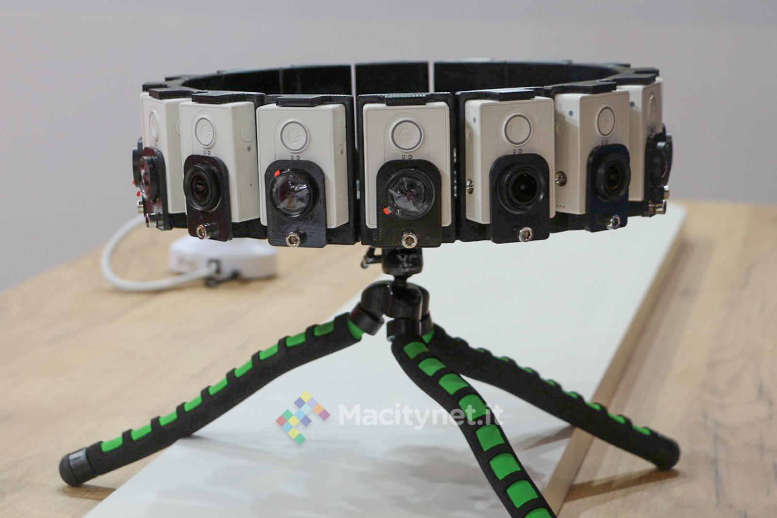 C’è ad esempio un hand grip con un particolare cubo all’estremità sul quale possono essere agganciate fino a 6 Yi Camera per riprendere la stessa scena da 6 angolazioni diverse. Ancor più interessante è il supporto che ne riesce a sostenere ben 16 allineandole intorno ad un cerchio e garantendo così riprese di foto e video praticamente a 360 gradi ed in altissima qualità.