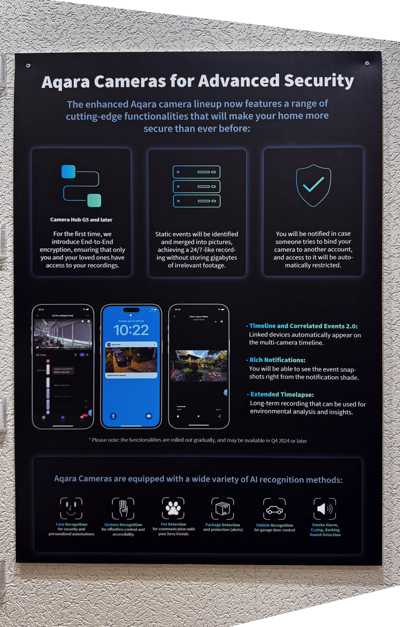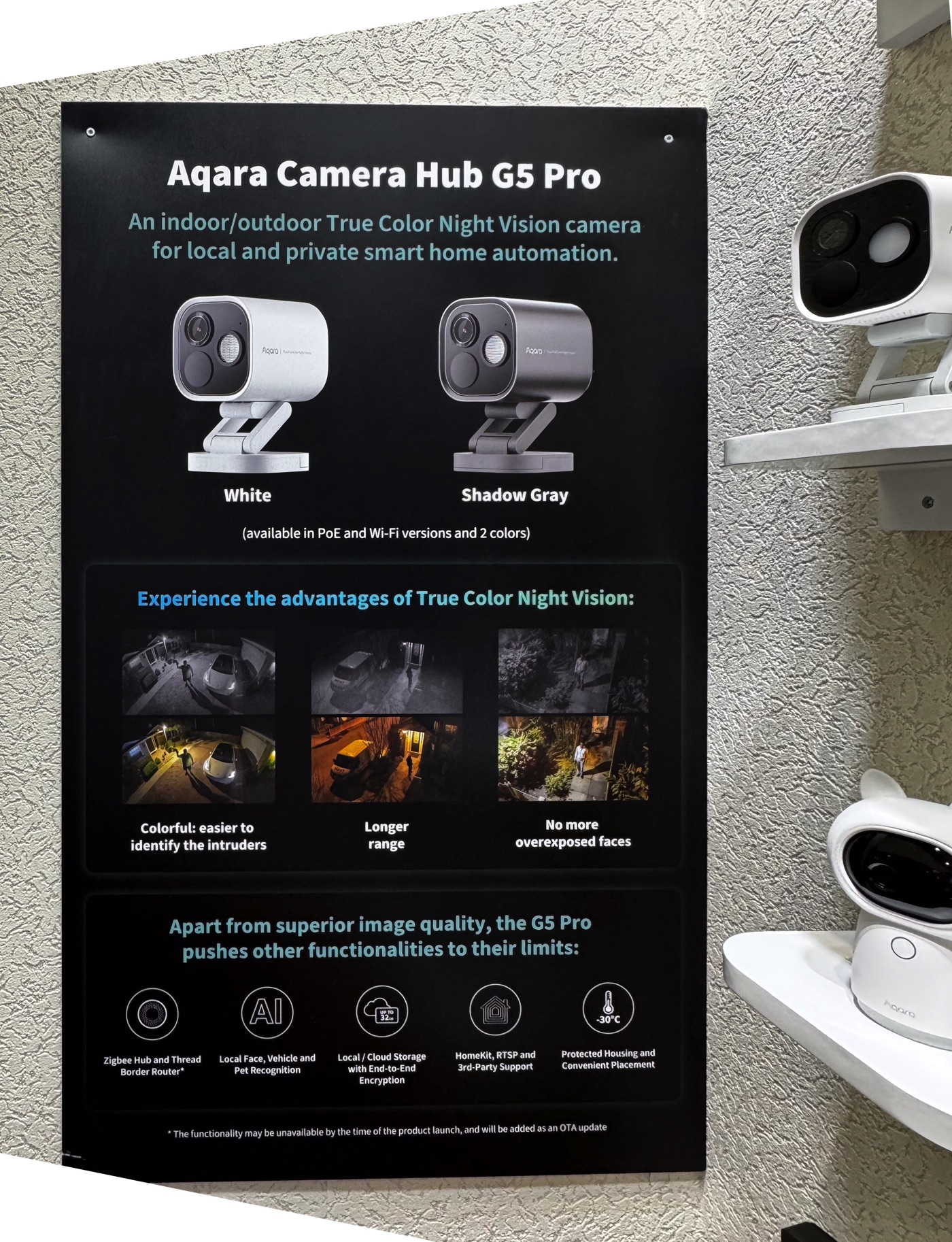 Camera Hub G5 Pro – Camera Hub G5 Pro è la prima telecamera di sorveglianza di Aqara destinata a un uso esterno. Disponibile nelle versioni PoE e Wi-Fi, la G5 Pro da 4MP è dotata di visione notturna True Color e di funzionalità IA sul dispositivo che rilevano e riconoscono volti, veicoli, animali domestici e pacchi. Queste funzioni aiutano gli utenti a monitorare le loro proprietà in tempo reale e a scoraggiare potenziali intrusi.