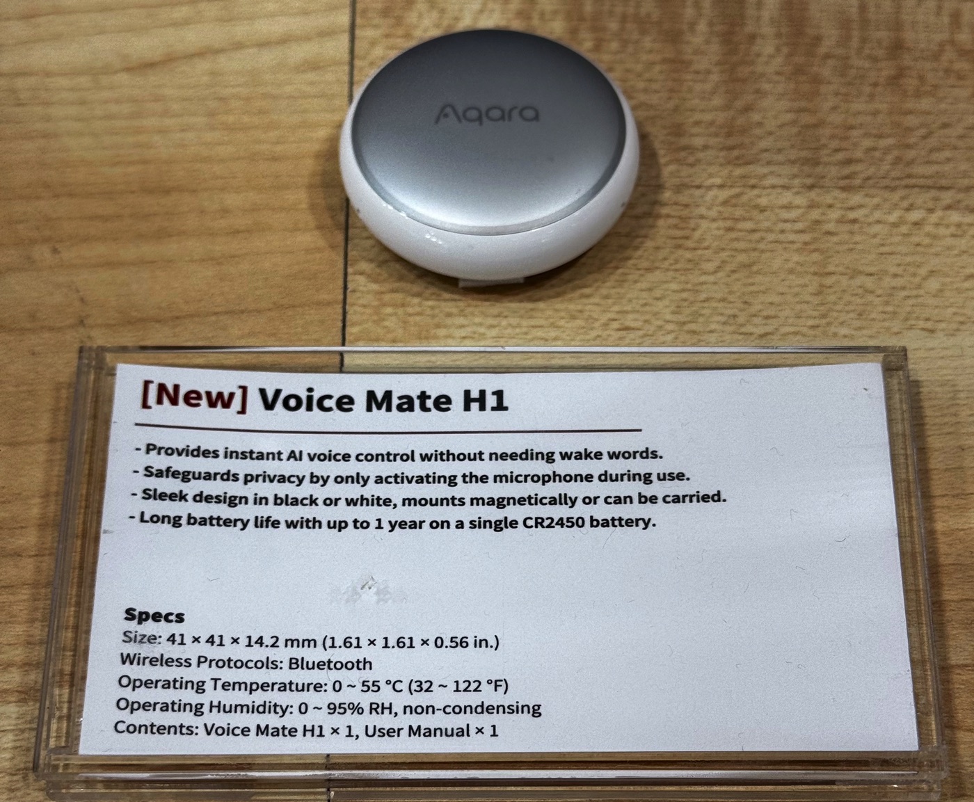 Voice Mate H1 – Il Voice Mate H1 consente il controllo vocale senza utilizzare il telefono. Questo prodotto è un accessorio di Aqara Hub M3 ed è un dispositivo compatto, alimentato a batteria e dotato di un microfono incorporato, che consente agli utenti di comandare l’Aqara Copilot basato su IA generativa da qualsiasi punto della casa. A differenza di molti assistenti vocali che si affidano a dispositivi sempre accesi e connessi, in costante ascolto della parola d’ordine, Voice Mate H1 rimane in modalità di sospensione e si attiva solo quando viene richiamato dall’utente, massimizzando la protezione della privacy.