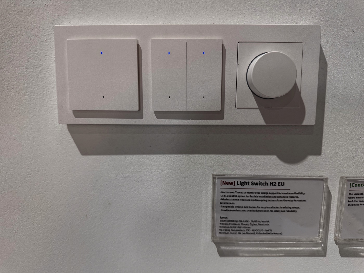 Linea di interruttori a parete H2 EU – Per ampliare la gamma di prodotti per la gestione dell’energia nel mercato europeo, debutta una nuova serie di interruttori a parete basati sul protocollo Thread, tra cui i modelli Light Switch H2 EU, Dimmer Switch H2 EU e Shutter Switch H2 EU.