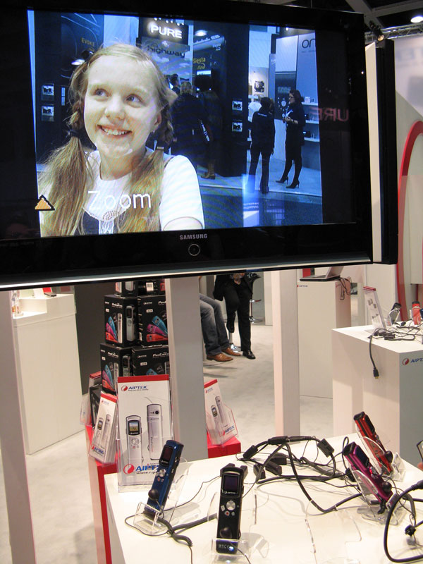 Macitynet ha potuto provare in anteprima questo super compatto dispositivo tascabile che è dotato di 4GB di memoria interna e anche di uno schermo da 1,1″ che viene utilizzato principalmente come obiettivo per inquadrare i soggetti da riprendere e fotografare. La batteria integrata permette di registrare fino a 2 ore di video e può essere ricaricata tramite il collegamento mini USB. tra i dettagli interessanti di questo esercizio di miniaturizzazione ricordiamo la presenza di una uscita HDMI che permette di collegare direttamente la PenCam Trio HD ad un televisore HD. Presso lo stand Aiptek abbiamo potuto constatare che la qualità su schermo di filmati e foto risulta decisamente buona. Nel nostro veloce test all’IFA PenCam Trio HD ha mostrato buone qualità di ripresa e di scatto fotografico anche se le ottiche integrate non sembrano molto adatte per riprese macro e dettagli ravvicinati. Ciò nonostante questa chiavetta tascabile risulta interessante, soprattutto alla luce del futuro prezzo di vendita: sarà disponibile tra 2 mesi ad un prezzo che potrebbe aggirarsi intorno ai 100 euro.