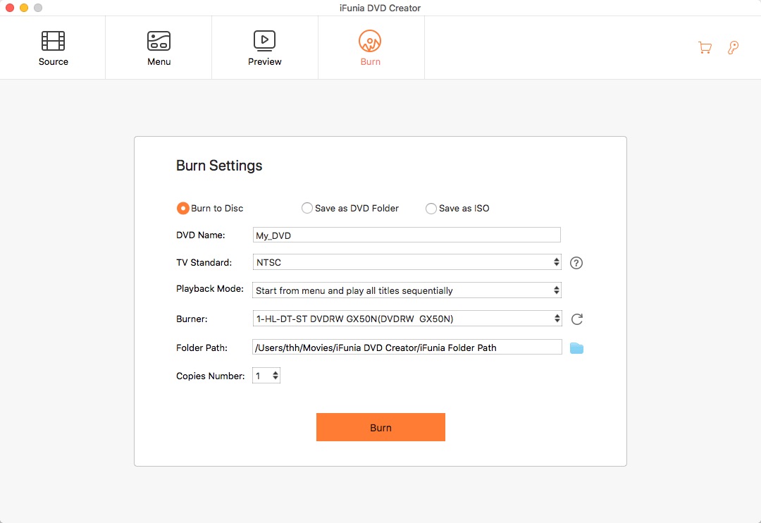 iFunia DVD Creator è una applicazione Mac che consente di creare in pochi passaggi DVD partendo da multiple tipologie di file sorgenti audio/video. È possibile creare menu per DVD da template e personalizzare varie opzioni, visualizzare in anteprima il risultato (come sarà mostrato il disco su un riproduttore da tavolo), creare dischi (usando un masterizzatore) o file ISO anche partendo da semplici cartelle.