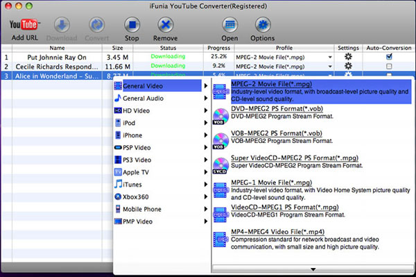 Lo sviluppatore iFunia presenta il programma YouTube Converter, un software che permette di scaricare e registrare su Mac i video in streaming da YouTube, inclusi anche i video in formato HD. A partire dal formato Flash originale .flv è poi possibile convertire i video in tutti i formati più diffusi e utilizzati tra cui ricordiamo: MP4, MOV, WMV, AVI, HD MP4, HD MOV, HD WMV, HD AVI, HD ASF, MP3 e così via. I video HD possono naturalmente essere convertiti per essere poi riprodotti su iPhone e touch: tutta l’interfaccia del programma è stata realizzata per risultare facile da utilizzare. Il software fornisce di serie tutte le impostazioni di conversione già pronte per un gran numero di dispositivi tascabili, in questo modo l’utente non deve conoscere a memoria risoluzione, frame rate e così via. Ricordiamo che è anche possibile estrarre la traccia audio dai filmati video.