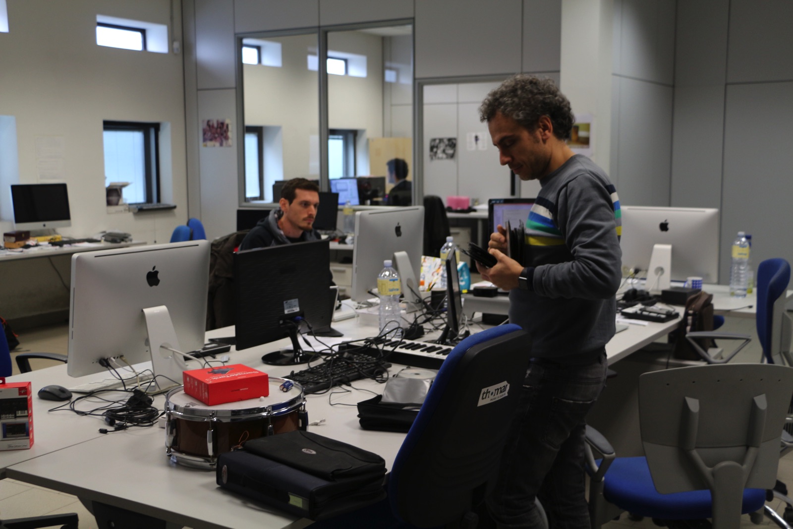 Alla guida di questa sezione di IK c’è Davide Barbi, CTO, che troviamo nella sua mega postazione alla prese con un prodotto che sarà sul mercato nelle prossime settimane: iLoud micro monitor, una coppia di monitor da studio “trasportabili” dalle dimensioni adatte ad entrare dentro uno zaino senza perdere la qualità audio e le caratteristiche utili a chi fa musica ovunque sia in fase di produzione che di missaggio.