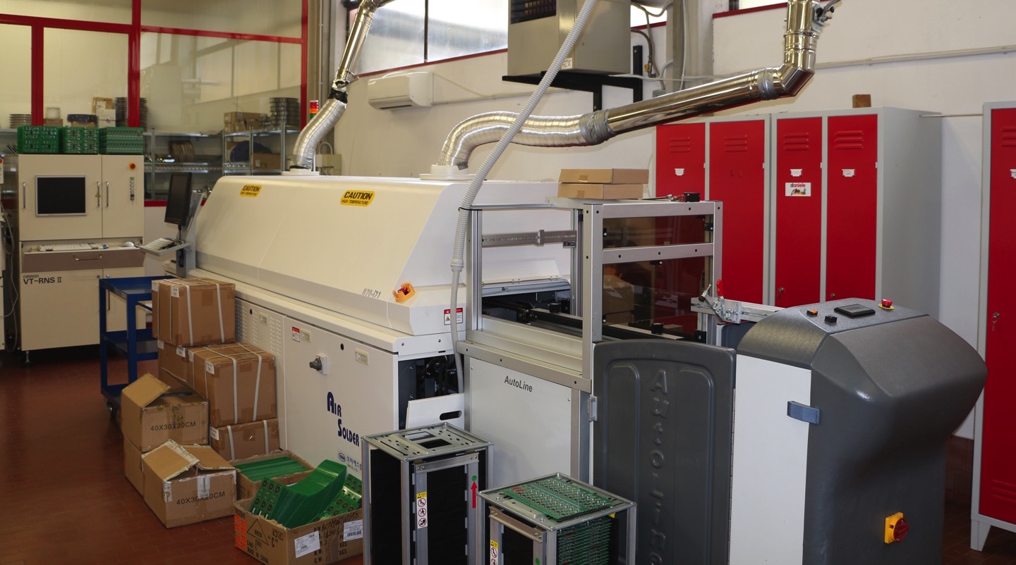 E così dopo una visita al vicino reparto produzione che adotta i sistemi di assemblaggio di Siemens basati sulle ormai classiche “rolle” con componenti elettronici a montaggio superficiale ci trasferiamo nel nuovo stabilimento dove IK gestisce il design, l’assemblaggio finale, l’inscatolamento, l’immagazzinamento e la spedizione finale dei suoi prodotti.