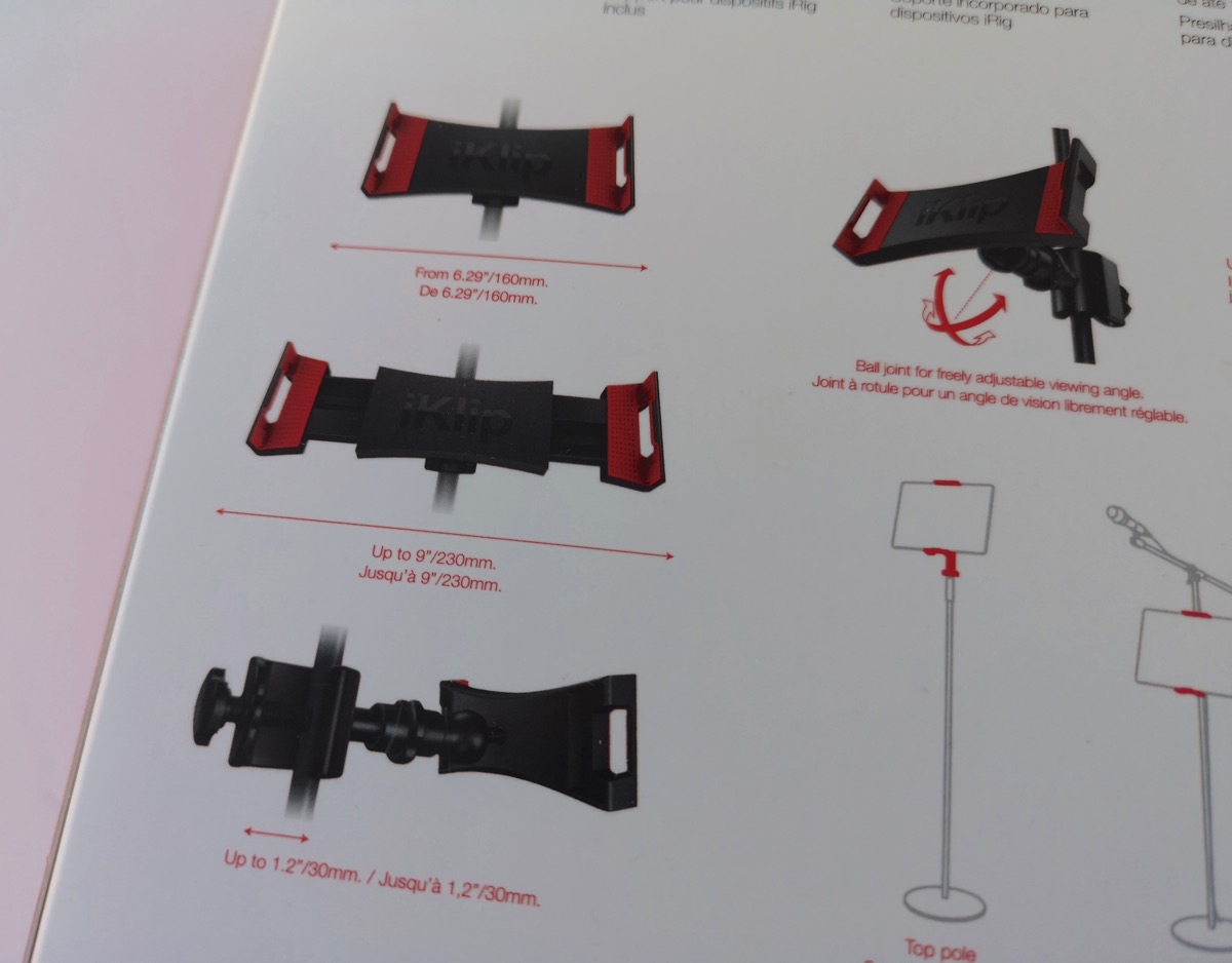 Il nuovo design di iKlip 3 consente di montare il tablet in tre modi: davanti, lateralmente o sul braccio di qualsiasi asta microfonica – fino a 1,2″ (30mm) di diametro – in modo che il dispositivo si trovi sempre nella posizione ideale durante qualsiasi concerto. Molto pratica inoltre la nuova asola in Velcro che consente di assicurare interfacce, cavi e altri accessori mantenendo l’installazione pulita e organizzata.