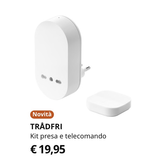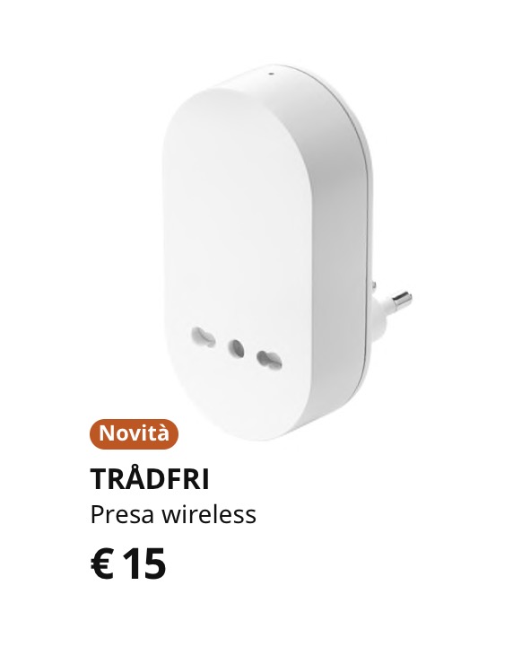 Nella categoria Illuminazione Smart di nuovo c’è la lampadina TRÅDFRI di tipo LED con attacco E27 e luminosità pari a 1.000 lumen di categoria energetica A+ venduta singolarmente per 15 euro, in kit con il telecomando per il controllo remoto senza smartphone al prezzo di 20 euro oppure nel pacchetto comprensivo di due lampadine, telecomando e gateway per 69 euro.