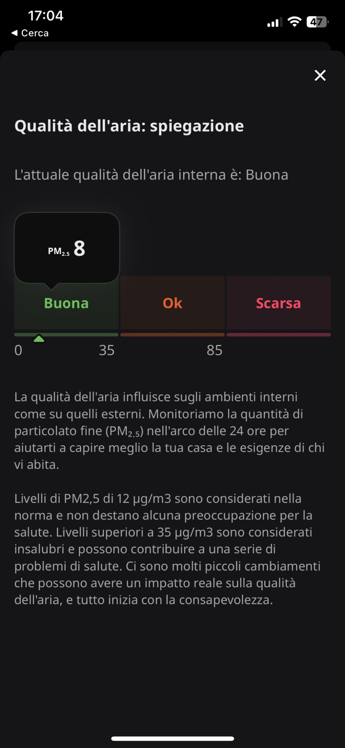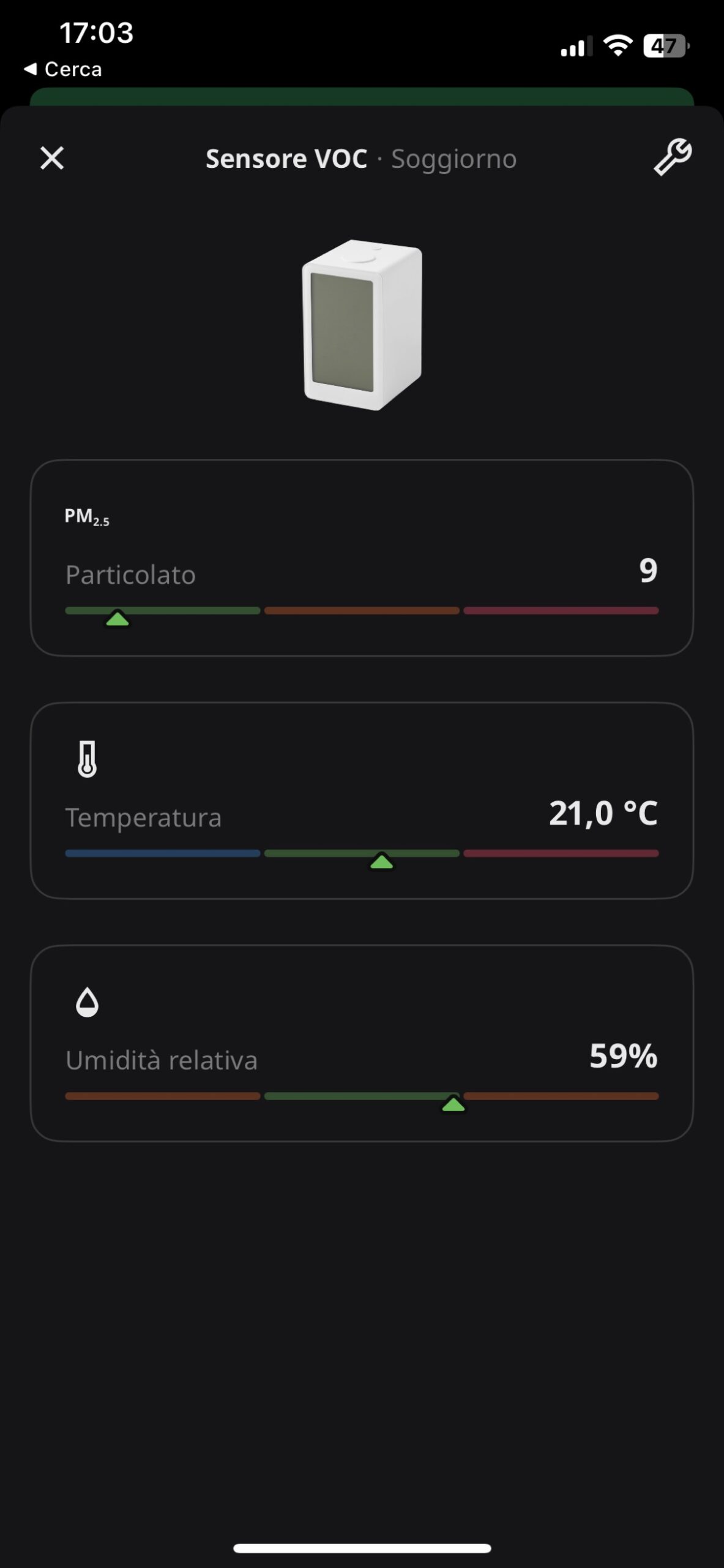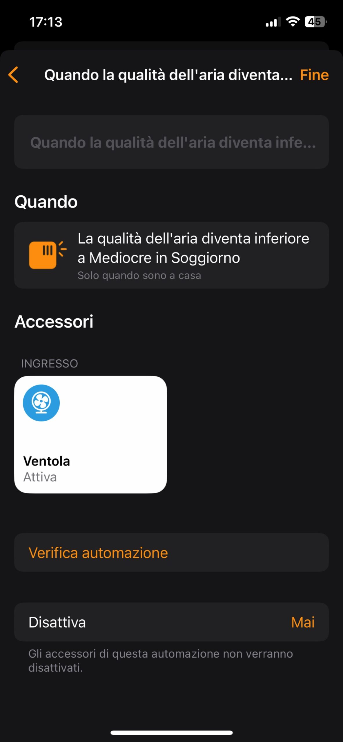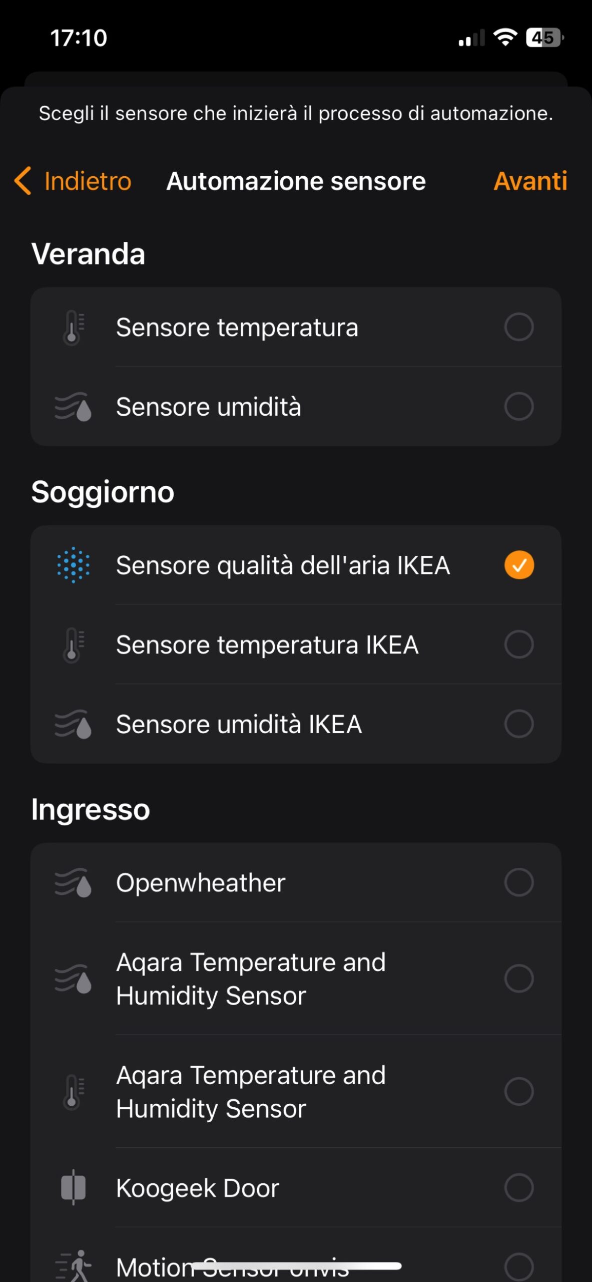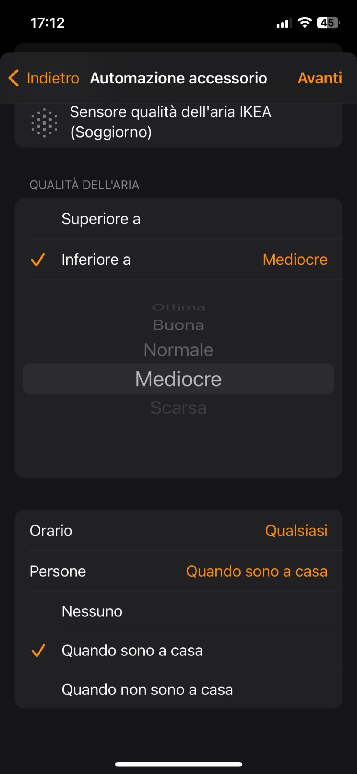 Se abbiamo già collegato Dirigera ad Homekit (o un altro assistente vocale come Alexa o Assistente Google) è facile andare a controllare il sensore e i suoi dati anche attraverso il sistema più ampio e creare scenari e automazioni in cui i valori rilevati dal sensore fanno partire azioni per gestire al meglio riscaldamento o raffreddamento, eliminazione dell’umidità o miglioramento della qualità dell’aria.
