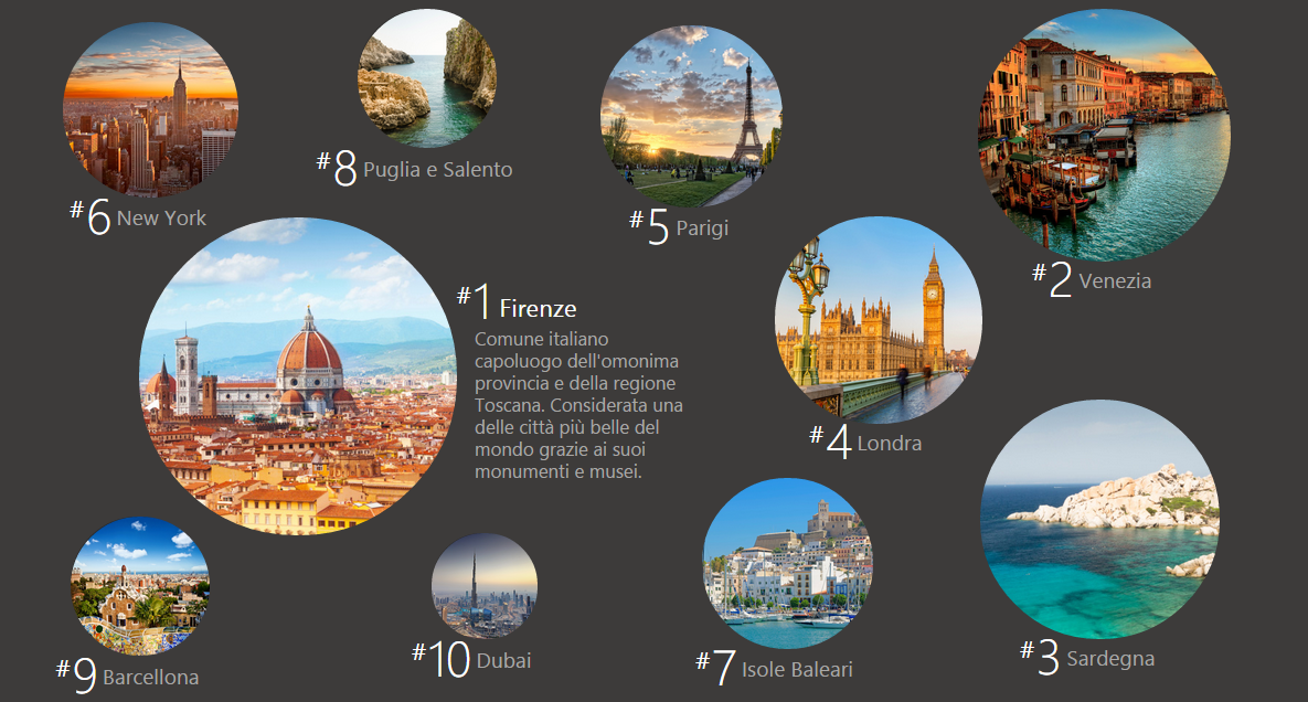 Immancabili i viaggi nelle ricerche. Se si guarda ai sogni degli italiani alle prese con la ricerca della mete perfette per i propri soggiorni vacanzieri, è possibile sancire la vittoria del Bel Pease. Nel 2014 infatti città d’arte nostrane e regioni simbolo di mare e paesaggi splendidi la fanno da padrone. Firenze e Venezia – perle della cultura e del patrimonio italiano – dal 4° e 5° posto del 2013 scalano la classifica e agguantano rispettivamente la prima e la seconda posizione, mentre la Sardegna e la Puglia conquistano il 3° e l’8° posto. Ma non mancano anche popolari mete straniere come Londra, Parigi e New York, rispettivamente alla 4°, 5° e 6° posizione. Soltanto a chiudere la classifica Dubai, il secondo più grande emirato arabo da sempre simbolo di lusso e glam.