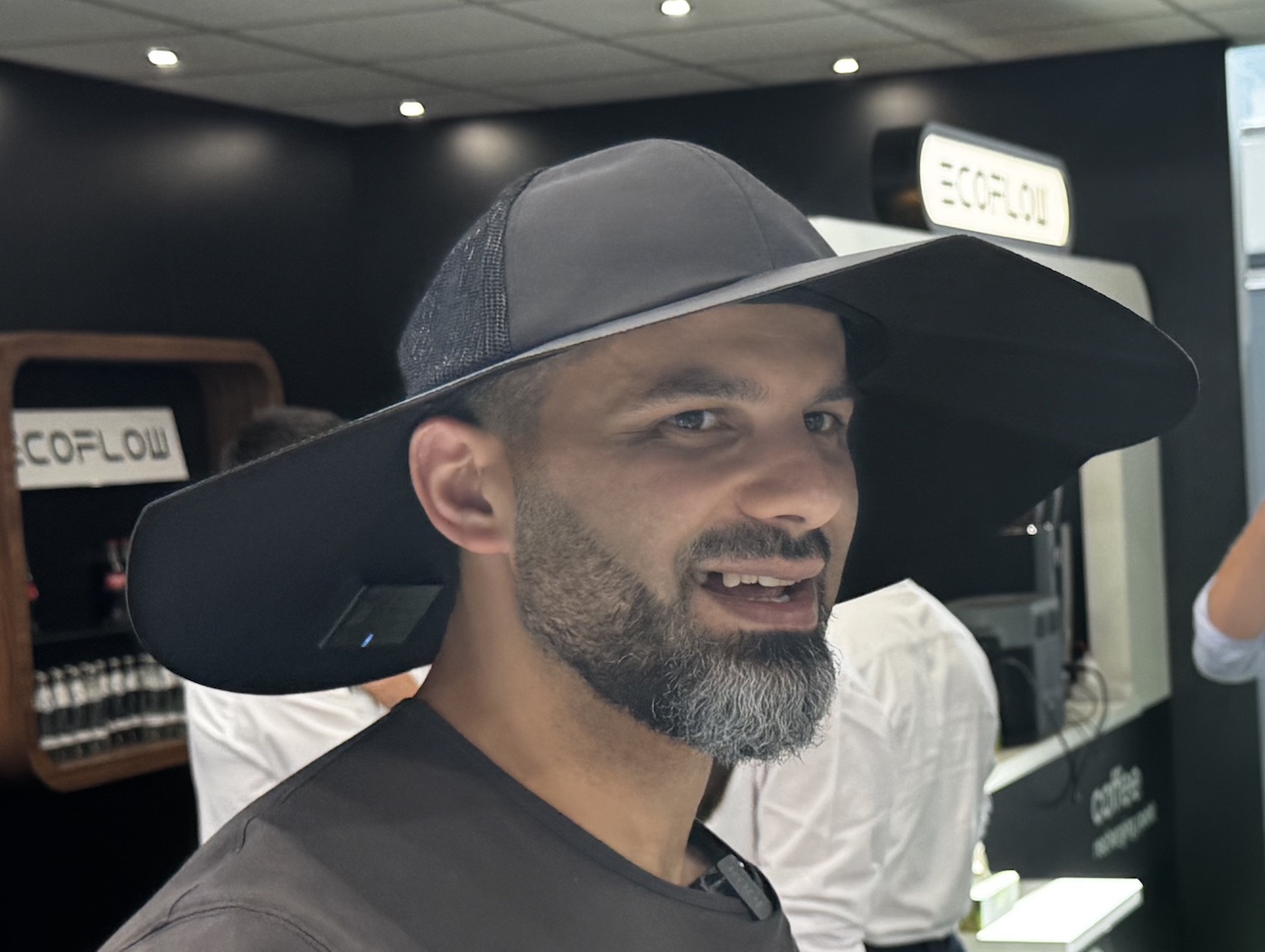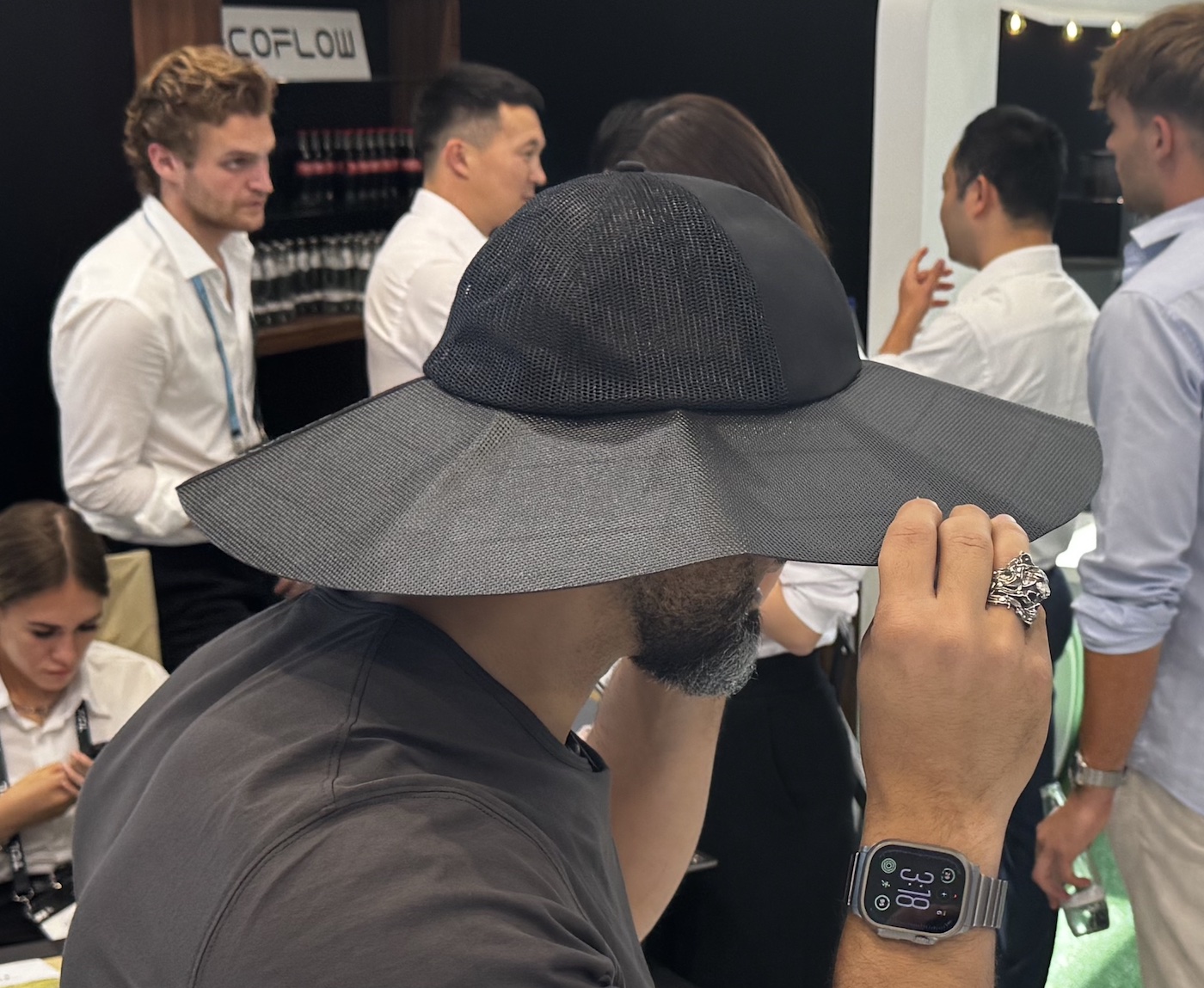 Qui sotto vediamo il cappello indossato da un divertito giornalista in occasione di IFA 2024.