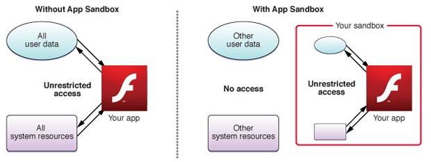 Nel nuovo OS X 10.9 Mavericks Flash Player viene eseguito nella modalità sicura Sandbox. La conferma arriva direttamente dal blog dell’Adobe Secure Software Engineering Team (ASSET): da qui gli sviluppatori fanno sapere che con OS X 10.9 Mavericks Flash player viene eseguito in una zona protetta della memoria.