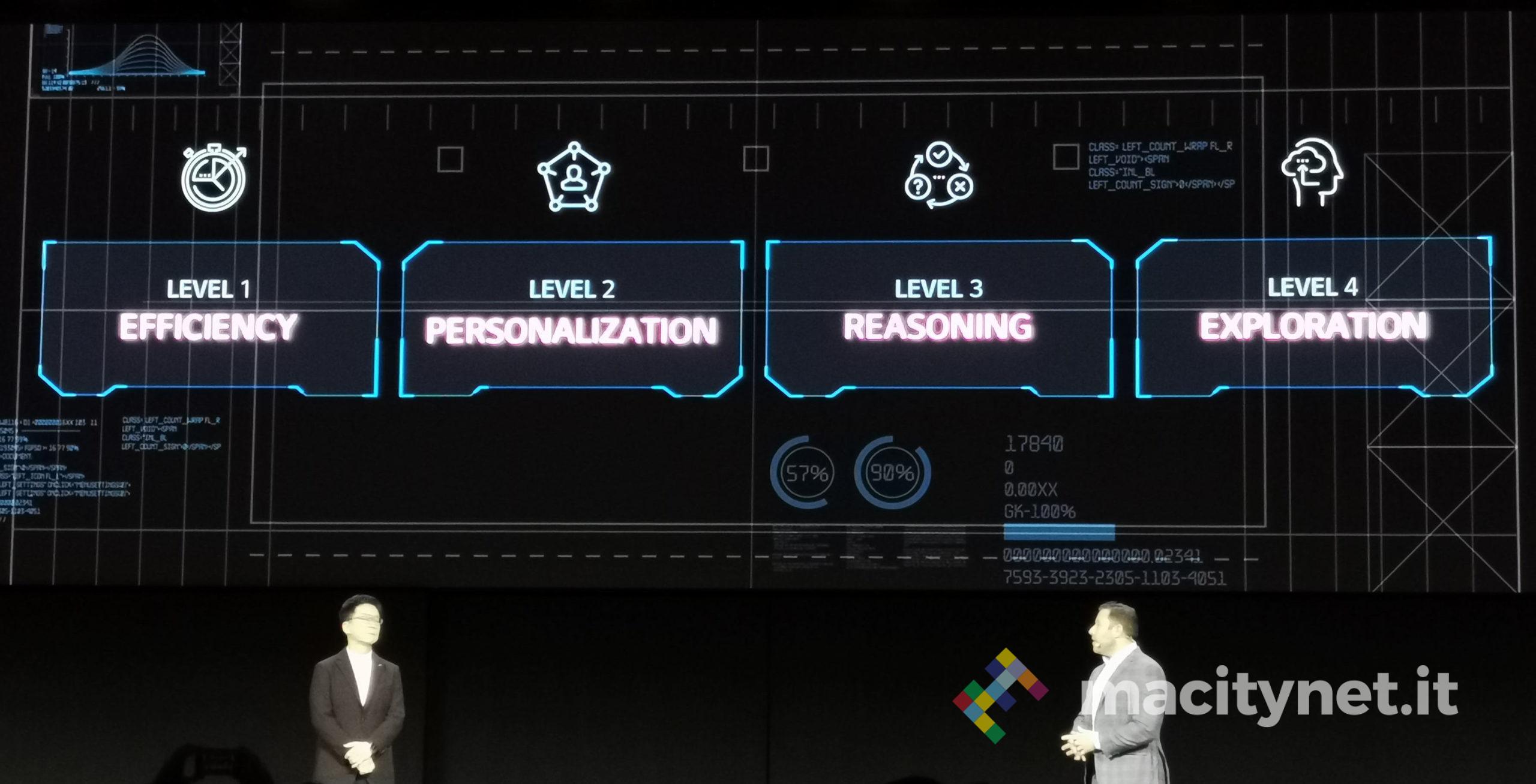 LG nel suo Keynote al Mandalay Bay e in alcune demo nel suo padiglione dal titolo “Anywhere is Home” ha prefigurato ulteriori evoluzioni dell’AI e, sinceramente, siamo rimasti allo stesso tempo affasciati e spaventati dalle possibili implicazioni. Il terzo stadio prevede una intelligenza “ragionante” che connette l’analisi delle vostre emozioni con dei suggerimenti di vita quotidiana e comportamenti complessi: ad esempio se dovete tenere un discorso per la riunione della vostra azienda vi suggerisce di indossare un particolare vestito, arrivare rilassati all’evento facendovi una sauna, bevendo una particolare tisana e aiutandovi nel ripetere a voce alta il vostro discorso mentre fa scorrere le slide della vostra presentazione sul vostro TV o sul grande schermo della vostra auto a guida autonoma.