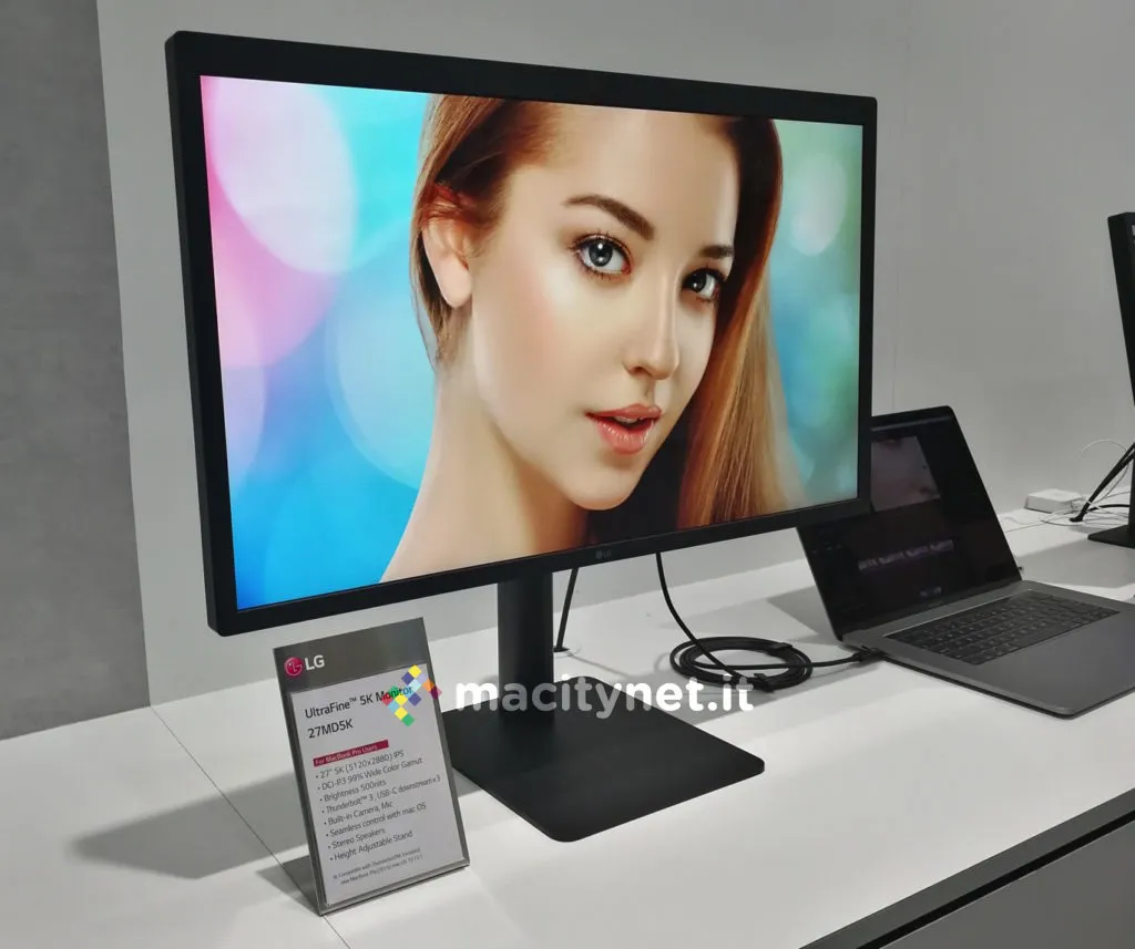 LG UltraFine da 27″ 5K in abbinamento al MacBook Pro nello stand LG al CES2017