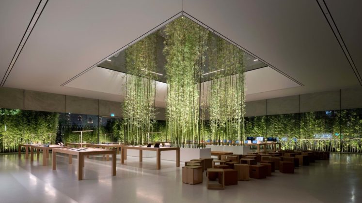 Lo store è descritto come “un’oasi di tranquillità” e allo scopo sono state sfruttate piantagioni di bambù che dovrebbero dare ai clienti l’impressione di isolarsi dal caos cittadino. L’entrata è una sorta di rettangolo sviluppato in orizzontale. Al piano terra i muri della facciata sono in vetro e si opacizzano verso l’altezza, un aspetto ispirato alle lanterne decorative di carta. Internamente l’effetto visivo cambia in base alla luce che arriva dall’esterno.