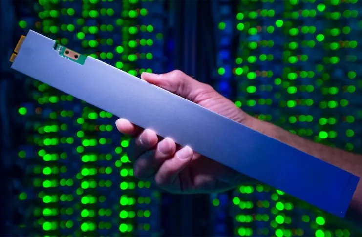Oggi nei data center il costo del raffreddamento rappresenta la prima voce di spesa. Sostituendo i dischi fissi con questo righello intel viene prodotto molto meno calore. Per il raffreddamento è sufficiente metà del flusso d’ario richiesto da un SSD tradizionale.