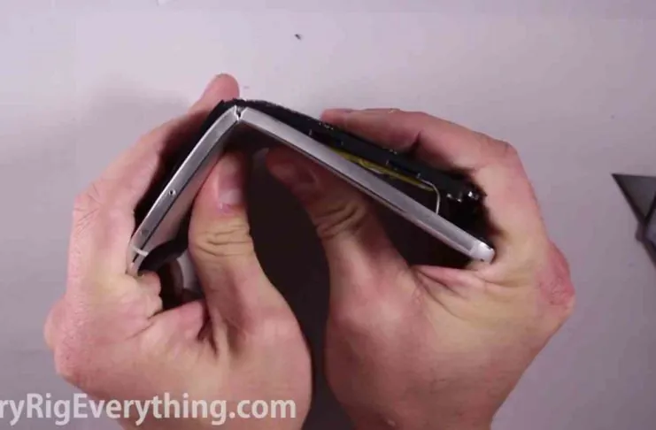 Invece, dal punto di vista comunicativo, come accennavo sopra, c’è un altro contenuto. C’è una esplicitazione delle competenze del pubblico, ad esempio. Qui infatti viene erogata un po’ di informazione, di “news”, per chi segue: si mostra chiaramente cosa vuol dire la resistenza strutturale di un prodotto e qual è, secondo Jerry, il prezzo da pagare per seguire una strategia di design come quella di Apple che vede i prodotti sempre più sottili: una “patata avvolta nell’alluminio” priva di un vero e proprio telaio, con numerosi punti deboli sulla scocca di alluminio (i fori dei microfoni e l’entrata della Usb Tipo C) che si piega come niente se uno ci mette un bel po’ di forza.