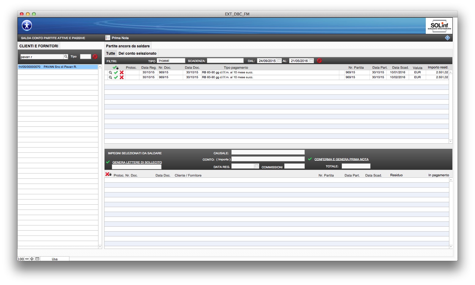 box_dbcokI clienti che apprezzano e utilizzano FileMaker Pro, da tempo hanno chiesto a Solinf, azienda da sempre all’avanguardia negli applicativi gestionali,  di realizzare un software per la gestione della contabilità che si basasse su questa piattaforma: è nata così FM-DBC, la soluzione per la gestione della contabilità, per la piccola e media impresa, sviluppata interamente su piattaforma FileMaker Pro, utilizzabile su Mac e PC.