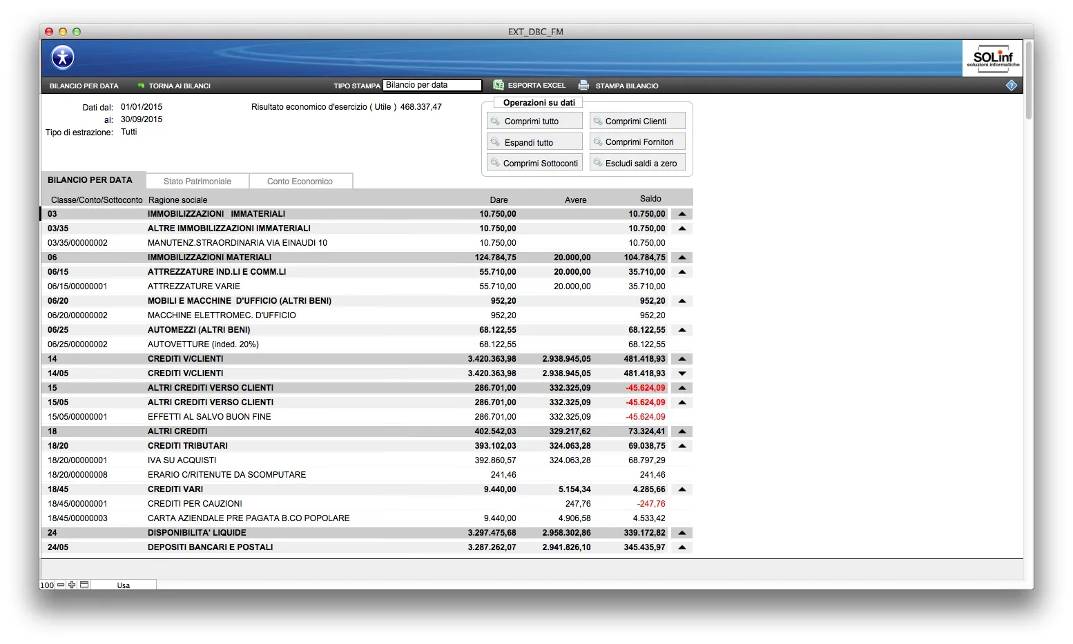 Anche chi non è del settore potrà facilmente consultare dei bilanci, salvarli in PDF, esportarli in Excel o inviarli via e-mail al proprio commercialista.