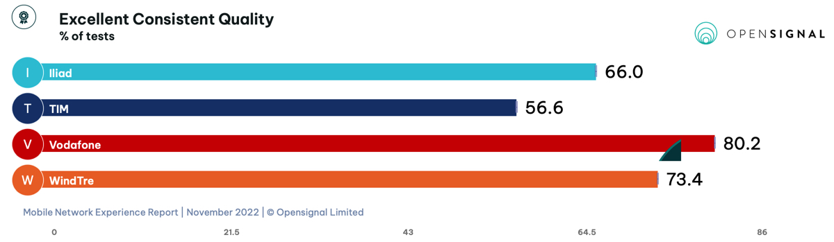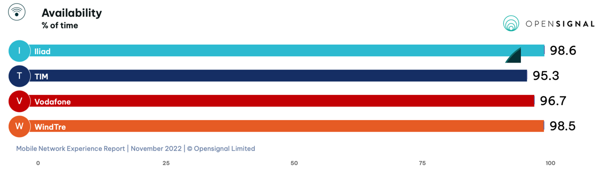 Opensignal ha assegnato il premio “Availability award” a iliad Italia, che così supera Tim, Vodafone e Wind Tre in questa classifica. La società indipendente, nota per la valutazione dell’esperienza degli utenti di telefonia mobile, ha analizzato la disponibilità della connessione a cui hanno accesso gli utenti delle principali reti mobili in Italia e la quantità di tempo che gli utenti hanno trascorso connessi a un segnale 3G/4G/4G+/5G, che fa della rete iliad la prima in Italia per disponibilità di segnale.