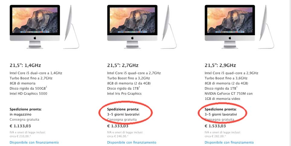 Macrumors fa notare che sull’Apple Online Store i tempi di spedizione di tutti gli iMac, escluso il modello base e il Retina 5K sono passati a “3-5 giorni lavorativi”. Anche per il MacBook Pro 15″ con display Retina da 2,5GHz sono indicati tempi di spedizioni in “1-2 settimane”.