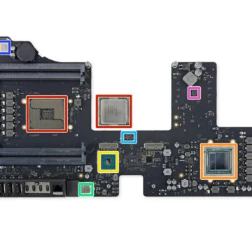 All’apertura si notano subito le doppie ventole, parte del meccanismo di architettura termica predisposto da Apple. Il dissipatore si svita con facilità. Si passa poi alla scheda logica. Su questa sono presenti gli slot per la RAM, la CPU (su socket), la GPU (saldata) ma per accedere agli elementi sulla motherboard è necessario rimuoverla dalla sede.