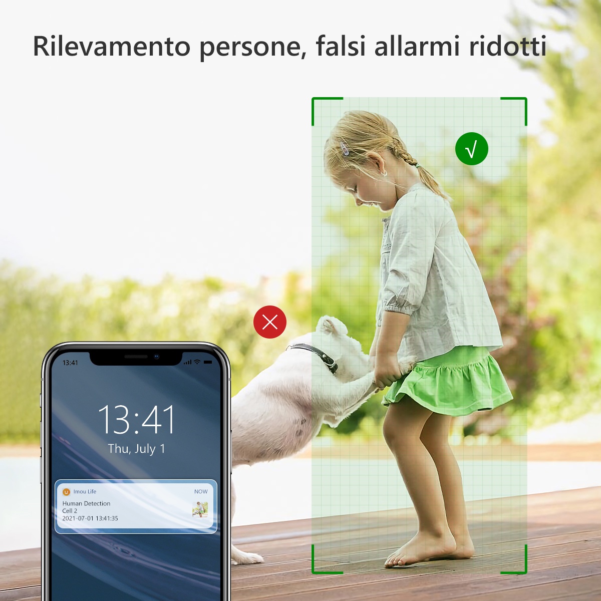 Il PIR (Passive InfraRed) e la tecnologia di elaborazione delle immagini di Cell 2 identificano accuratamente le persone nell’immagine e inviano immediatamente una notifica sullo smartphone, con un tempo di rilevamento inferiore a 0,3 secondi.