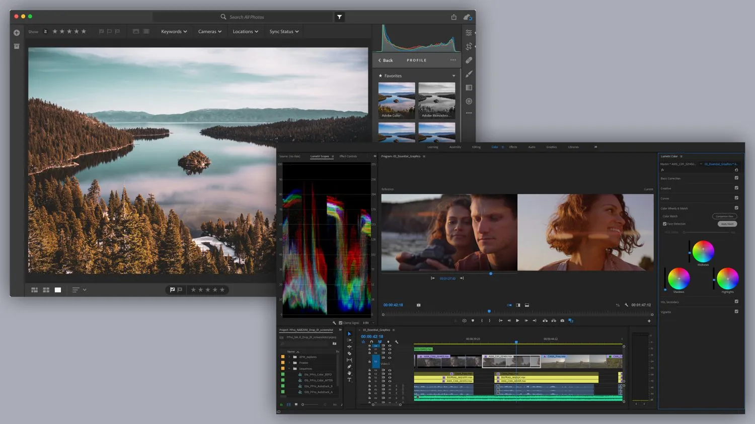 Tra le novità di Premiere CC, la doppia visualizzazione per la creazione di un look. È possibile suddividire la vista Monitor programma in orizzontale o verticale oppure visualizza reimmagini intere una affianco all’altra per confrontare il loro aspetto prima e dopo la correzione del colore. È possibile confrontare l’aspetto di due diverse riprese in una sequenza e abbinare i colori mantenendo intatte le tonalità della pelle con un solo clic. Tutte le modifiche apportate sono visibili e accessibili all’utente e possono essere ulteriormente manipolate se necessario.