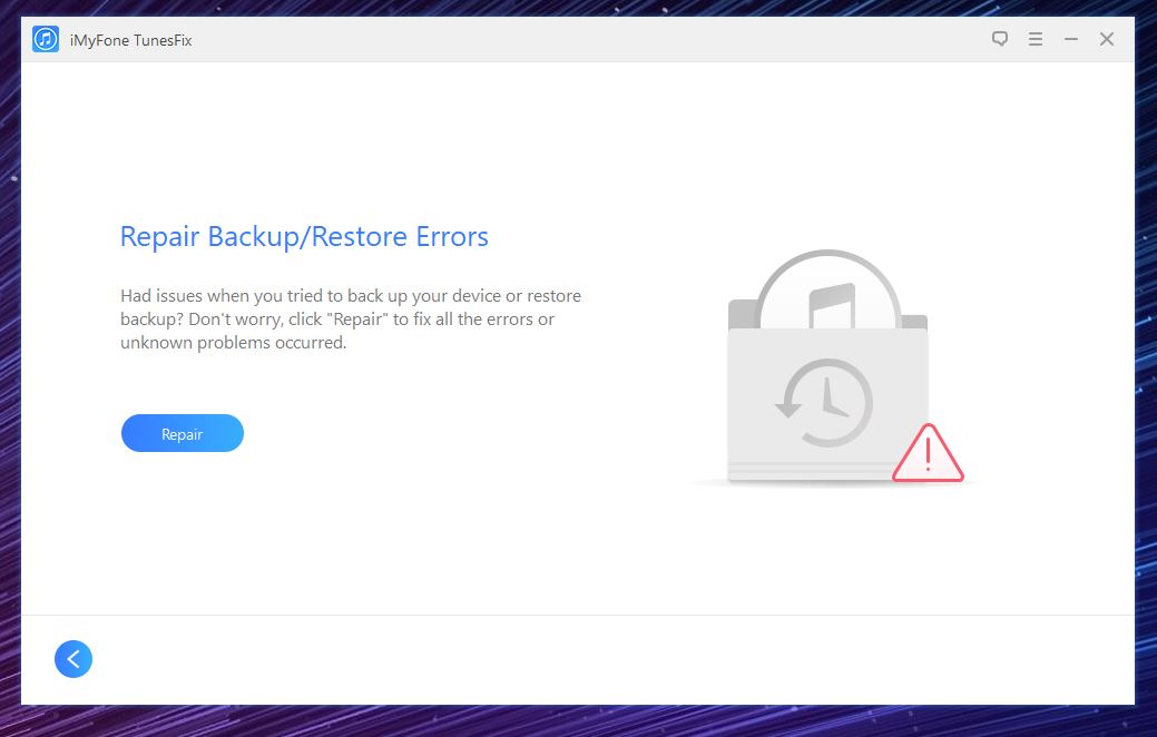 Altro problema che viene facilmente risolto da iMyFone TunesFix è quello relativo alla incapacità di iTunes di creare un backup o effettuare il restore da un backup creato in precedenza. questo accade quando il file di backup risulti, per qualche motivo, corrotto o non compatibile, quando la sessione di backup fallisce o intervengono errori sconosciuti.