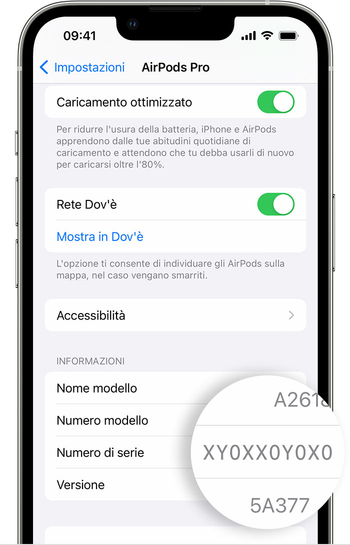 Altro modo per recuperare il numero di serie è direttamente da iOS o iPadOS: andando in Impostazioni > Bluetooth; qui basta trova gli AirPods nell’elenco, e tocca il pulsante Altre accanto agli AirPods per vedere il numero di serie.
