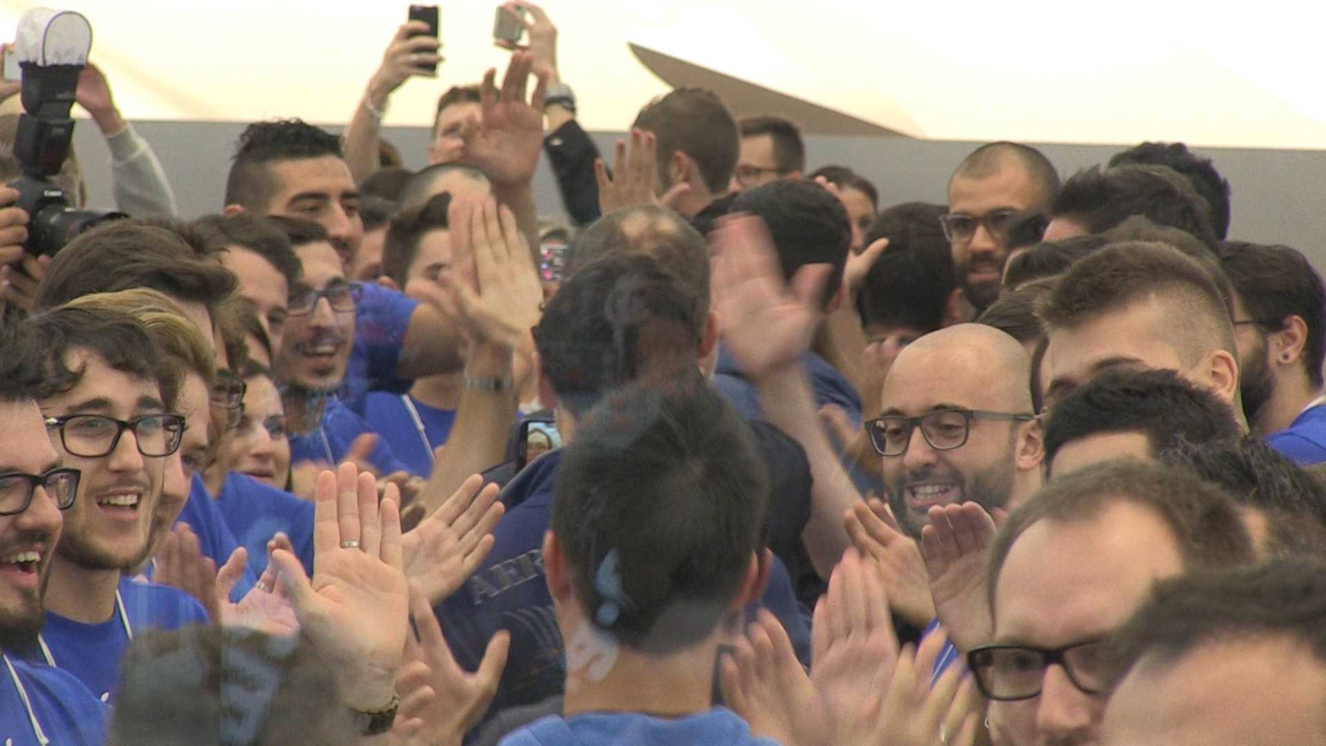 Come accennato, quando le porte si sono aperte e Alessandro è entrato, alle sue spalle si era formata una coda di un migliaio di persone accolte nello store dalle classiche “Ola” e cori degli addetti al negozio. Dopo la prima ondata che si è esaurita alla fine della mattinata, per tutto il giorno l’afflusso è stato molto elevato. Tra le persone che hanno varcato le porte dello store, c’erano appassionati della Mela, ma anche tantissimi curiosi attirati dalla kermesse e dalla folla del tutto inusuali nello scenario del commercio.