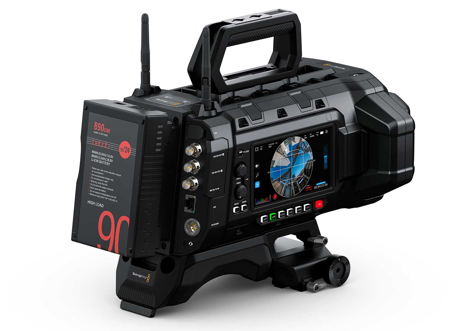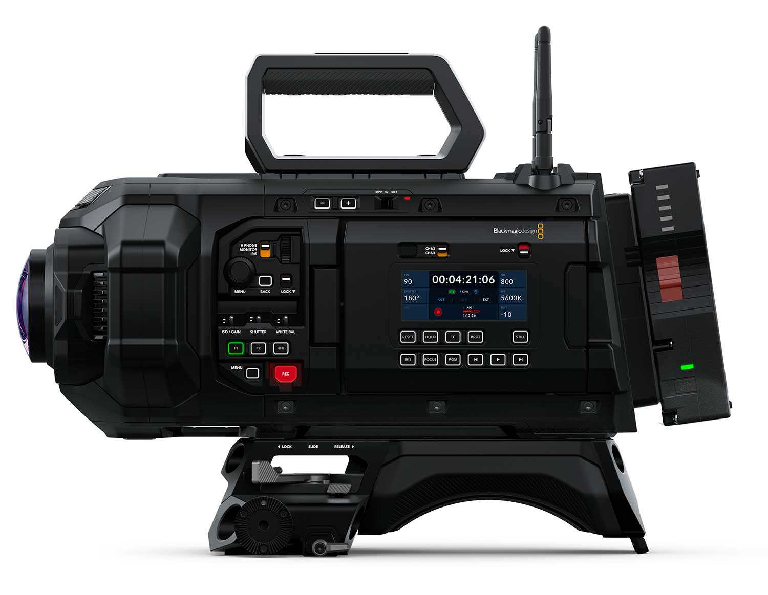 Ogni modello di Blackmagic URSA Cine è costituito da uno chassis resistente in lega di magnesio e rivestito in un composto in fibra di carbonio e policarbonato leggero, ideale per agevolare movimenti rapidi sul set. Non mancano connessioni 12G-SDI, 10G Ethernet, USB-C, audio XLR e altre ancora. . Il monitor richiudibile offre un touchscreen HDR 5″ da un lato e un LCD di stato a colori dall’altro. Il lato destro della camera ospita una sezione di monitoraggio, anch’essa con touchscreen HDR da 5″, e una serie di controlli dedicati, che consente agli operatori di lavorare intorno alla camera senza bisogno di un monitor esterno.