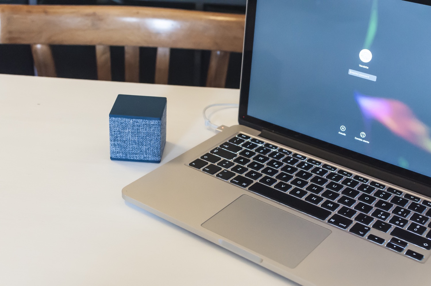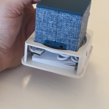 I tempi di carica sono di circa un’ora con un caricabatteria da 0,5 Ampere ma si riducono a 15 minuti con uno capace di erogare 2 Ampere. Collegato via USB al Mac, l’impressione è che questo lo tenga in vita garantendone l’utilizzo ma che non riesca a caricarlo se non in un tempo molto più alto del normale. Si parla di impressioni perché non c’è modo di valutare la quantità di carica residua al di la del segnale acustico sopra menzionato. Otto ore sono comunque molte per un diffusore di queste dimensioni e possiamo tranquillamente ammettere che in un utilizzo normale quotidiano, non continuo, il Cube fa il suo lavoro durante il giorno e si ricarica con calma la notte.
