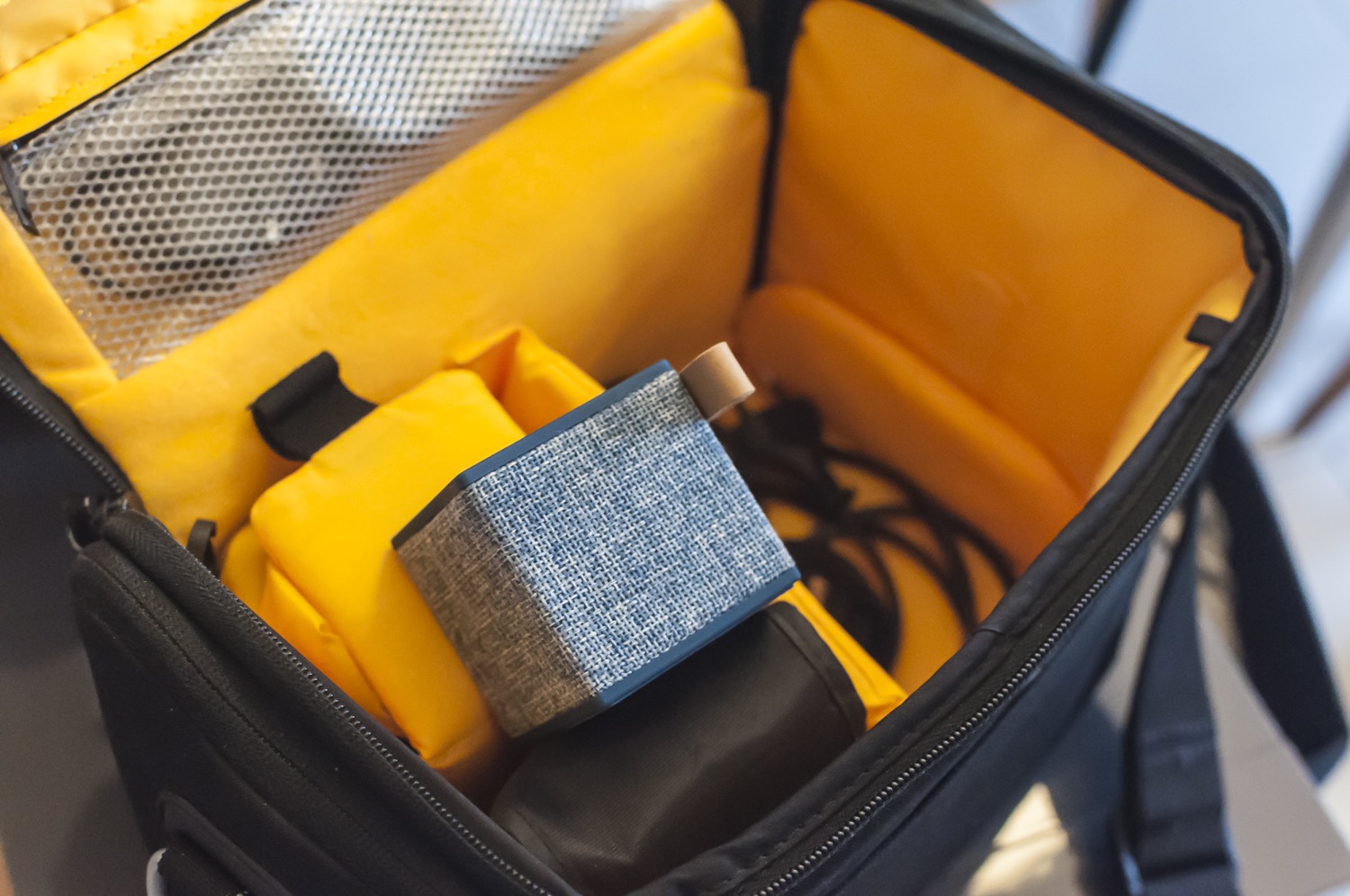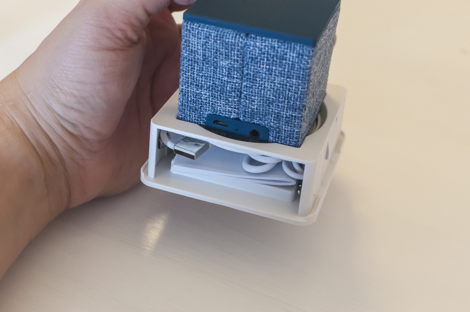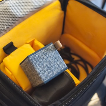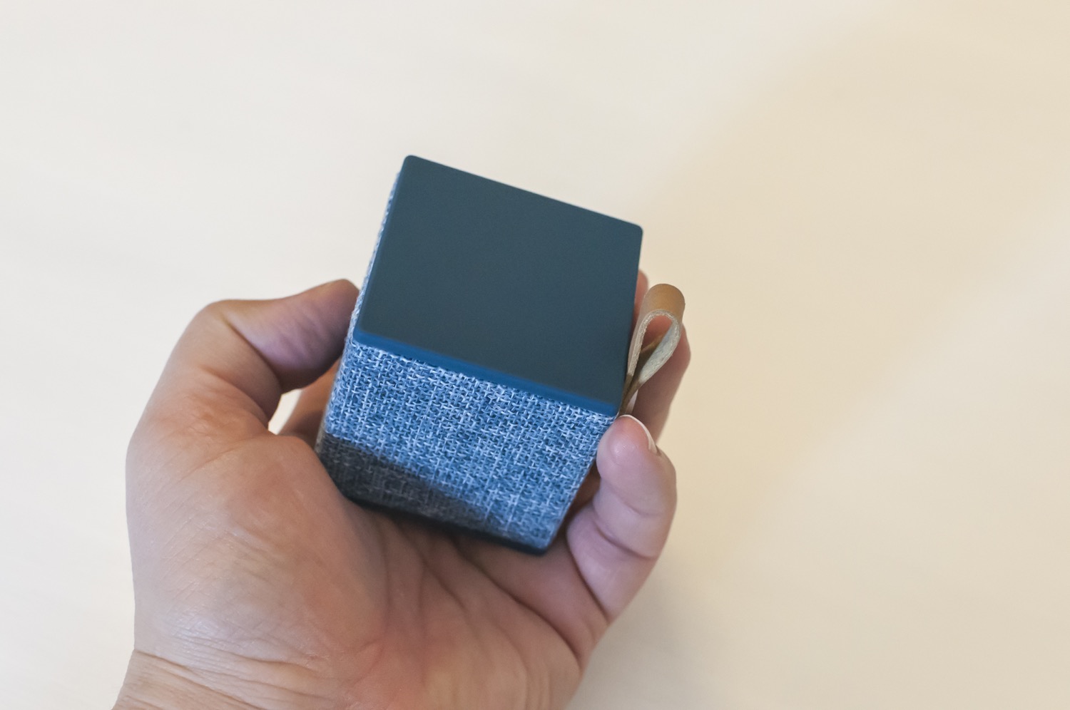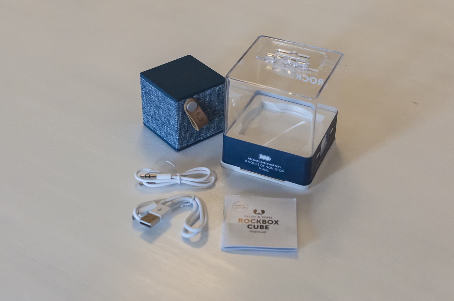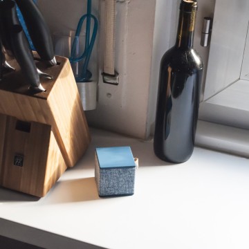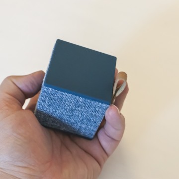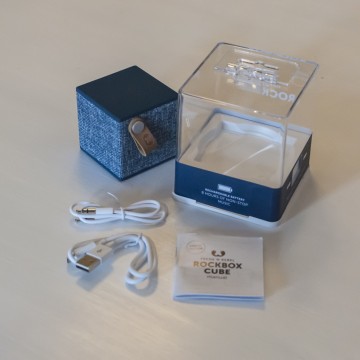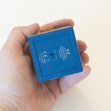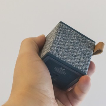 Il Cube è davvero un bel pezzo di diffusore: 6 centimentri nei tre lati per circa 140 grammi di peso ne fanno un oggetto che sta anche nel più piccolo zaino, discreto da posizionare in ufficio, sopra la coperta durante un pranzo al parco, in hotel o in classe. Due lati, quello superiore e inferiore, sono coperti da una gomma morbida e piacevole al tatto, mentre gli altri sono rivestiti di un tessuto intrecciato, simile al jeans ma a maglia più larga. Il prodotto è disponibile in cinque colori e funziona con qualsiasi dispositivo Bluetooth 4.0 o tramite jack analogico da 3,5 mm.