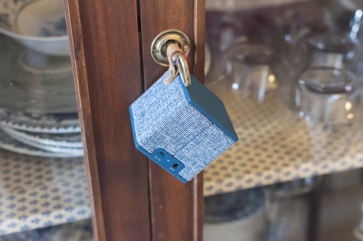 Lateralmente trova posto un piccolo gancio in pelle marrone che ne permette l’aggancio ad un sostegno qualsiasi senza l’ausilio di corde o altro, ma ovviamente fa la sua bella figura anche sopra una scrivania, su una mensola, in salotto o in cucina. Il design è semplice e originale e ogni dettaglio è curato: dalle cuciture alle prese. Il tessuto e la gomma si fonde perfettamente in un blocco che non scivola mai e, se anche lo fa, ci ha dato l’impressione di essere abbastanza robusto e leggero da non rischiare troppo in una caduta.