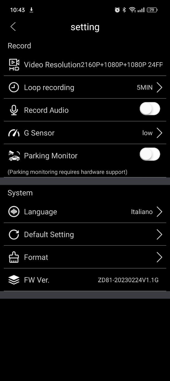 Sono davvero tante le funzioni che è possibile attivare tramite menù. Anzitutto, sarà possibile attivare la registrazione, o meno, dell’audio, così come sarà possibile impostare la risoluzione di registrazione, la forza del sensore G, oltre che impostare diversi parametri come l’esposizione, attivare il WDR, gestire la modalità parcheggio o attivare il WiFi per poter collegare la camera allo smartphone.
