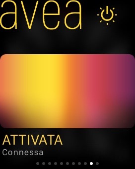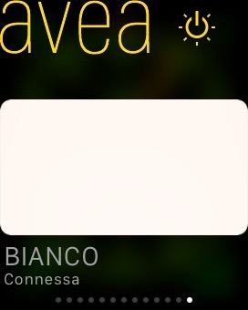La soluzione Avea è stata una delle primissime gestibili Apple Watch grazie a due differenti modalità: la “pubblicazione” dell’App tra quelle disponibili nella schermata principale dello Smart Watch e la visualizzazione dello stato delle lampade attraverso gli “Sguardi” (vedete le varie modalità nella galleria qui sotto). Attivazione, spegnimento, cambio di colore e di animazione sono gestibili molto facilmente con una o più lampade collegate, rendendo l’accesso da Apple Watch veramente diretto anche se come ben sappiamo è necessario fare ponte con un iPhone che sia nel raggio di 8-9 metri e quindi tipicamente nella stessa stanza o in una vicinissima.