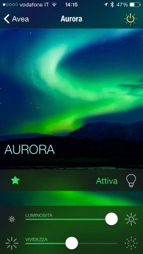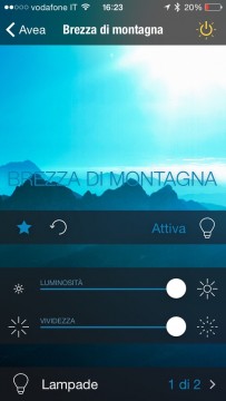 Nella nostra installazione di prova abbiamo usato due distinte lampade: al momento, al contrario della Hue già citata, non sono disponibili applicazioni di terzi parti che le gestiscono insieme con effetti di passaggio da una all’altra. Le lampade si possono regolare indipendentemente con effetti e animazioni singole gestibili da singole schermate dell’applicazione. Oltre a questo la lampada permette di gestire non soltanto il flusso luminoso (in gergo la lampada viene definita “dimmerabile”) ma anche l’intensità della colorazione. Una volta scelto il colore si dovrà confermare la sua attivazione.
