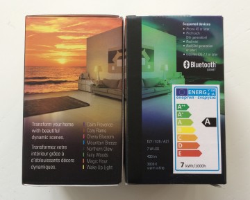 La tecnologia di trasmissione utilizzata è quella Bluetooth (nella versione LE 4.0) che permette un controllo diretto del dispositivo senza passare da un elemento “ponte” (gateway) che colleghi il dispositivo a un router; questa soluzione comporta vantaggi e svantaggi: il vantaggio principale è il costo visto che la lampada può essere venduta, installata e utilizzata anche in abbinamento ad altre senza altri accessori aggiuntivi; lo svantaggio principale è che occorre avere smartphone o tablet per il controllo a una distanza inferiore ai 9 metri in linea d’aria pena l’impossibilità di controllo della lampada stessa.
