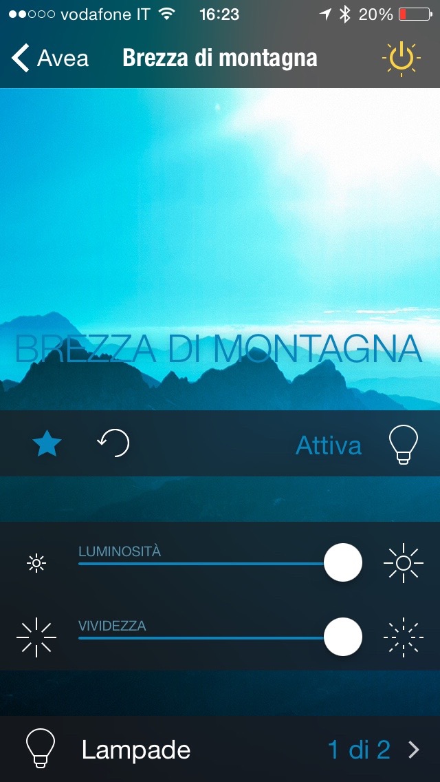L’installazione è ovviamente semplicissima: basta avvitare la lampada in un comune portalampada E27 e attivarla con l’interruttore dopo aver fatto il pairing classico con il Bluetooth: avremo l’illuminazione attiva secondo le ultime impostazioni per cui l’abbiamo utilizzata: questo è un fattore negativo e positivo allo stesso tempo perché da una parte richiede sempre la presenza di un iPhone o iPad collegato (o il settaggio al bianco fisso) e dall’altra permette di gestire scenari con una regolazione o animazione costante (utile ad esempio in un locale pubblico o con una disposizione fissa nel vostro salotto) che a sua volta non richiede l’uso di un dispositivo smart. Ricordiamo che sistemi come Hue di Philips richiedono un bridge aggiuntivo dal costo di 50 euro, lampade dal costo di 50 euro e a ogni riattivazione la luce torna al colore bianco standard.