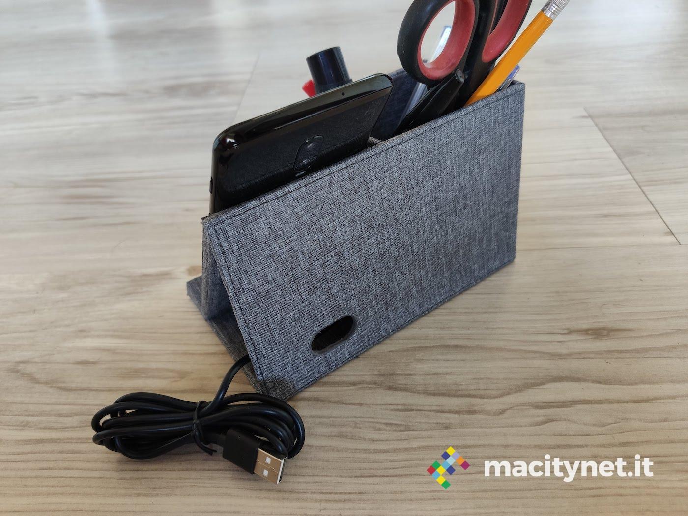Al giorno d’oggi la ricarica wireless sta prendendo piede sempre più, e sono tanti i terminali, soprattutto top di gamma, che ormai permettono una ricarica senza filo. Anche Apple, ormai da alcuni anni ha inserito il supporto alla ricarica Qi sui propri smartphone, a partire da iPhone 8, e fino all’attuale linea XS e XR. Il caricatore in prova Lecone, però, non ha solo la funzione di ricaricare il dispositivo, ma si tratta di un vero e proprio organizer da scrivania, con un ampio vano in cui poter alloggiare penne, matite, forbici, e altri arnesi di cancelleria.