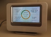 Ma veniamo al dettaglio: la prima fase dell’installazione “fisica” è il collegamento con la caldaia e questo viene effettuato dapprima con la sostituuzione (o prima installazione) del box a muro che chiude il contatto di attivazione, il box necessita di alimentazione perchè deve comunicare con il gateway attraverso il protocollo wireless specifico di Honeywell. La seconda fase di installazione riguarda il collegamento del gateway tramite un cavo ethernet al router di casa e infine l’accensione del display touch che può essere comodamente posizionato dietro il vostro divano, in salotto oppure appeso al muro con un accessorio ad hoc (non compreso nella confezione). In questo modo potremo controllare la prima zona che è quella in cui si trova il display stesso: tipicamente si tratta del salotto o della sala pranzo dove è comodo tenere sottocchio le temperature e dove il display può funzionare come comodo orologio digitale.