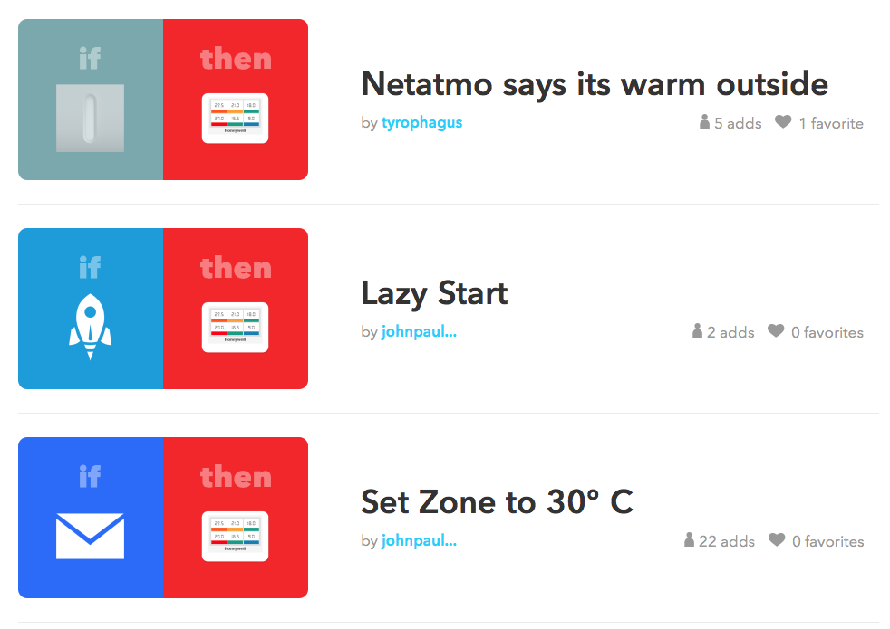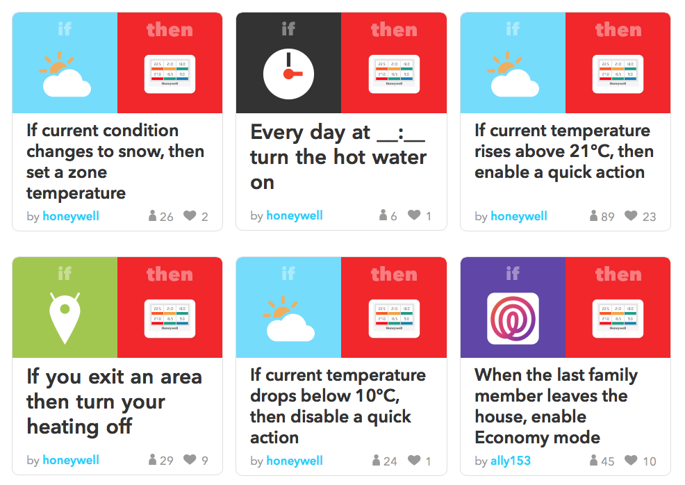 Il sistema evohome non ha di partenza tutte le capacità predittive/adattive dello strombazzato Nest ma grazie alla capacità di analisi dei tempi di riscaldamento della singola zona o stanza è in grado di gestire al meglio i tempi di accensione per offrirvi il giusto comfort termico nell’intervallo temporale utile. Non ci sono regolazioni di tipo GeoFencing nel software di base: in pratica non troviamo impostazioni relative alla distanza del vostro smartphone da un’area limite o funzioni della distanza da casa che vi permettano di attivare il riscaldamento in base alla vostra posizione. Per questo tipo di funzioni e per altre più complesse evohome si giova di un servizio esterno che molti appassionati di domotica e automazione conoscono: IFTTT che significa If This Than That e che mette in correlazione molti dei dispositivi della cosiddetta Internet Of things con relazioni geniali quanto curiose e soprattutto utili: ad esempio se pubblichiamo sul nostro status la frase: “Studio al freddo” potreste attivare il riscaldamento dello studio di casa, se avete superato il vostro target di corsa con un rilevatore Nike potete attivare la caldaia e di conseguenza l’acqua calda per la doccia oppure regolare, come dicevamo pocanzi, l’attivazione del riscaldamento di casa o di una parte di essa in funzione della distanza dalla casa stessa.